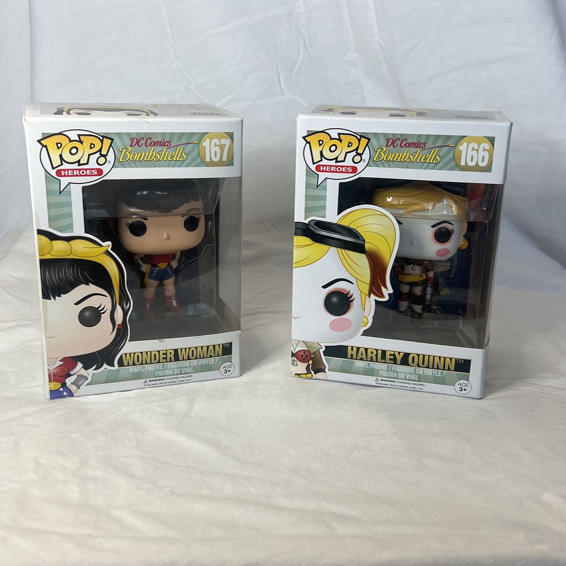 Funko Pops Dc Comics Bombshells Wonder Woman #167 Harley Quinn #166