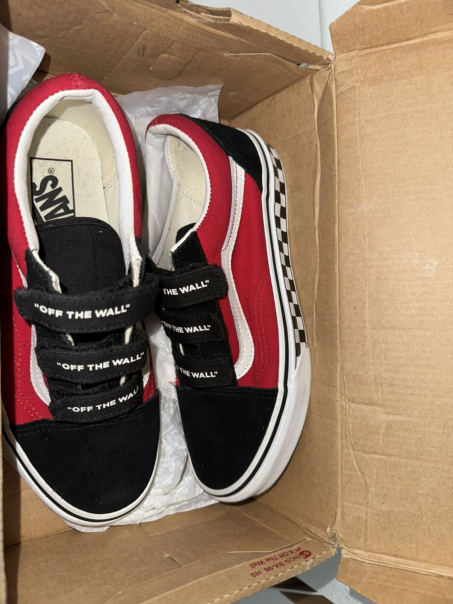 Vans shoes red,black and white size 6Y or 7.5women Used maybe once or twice. Excellent condition.