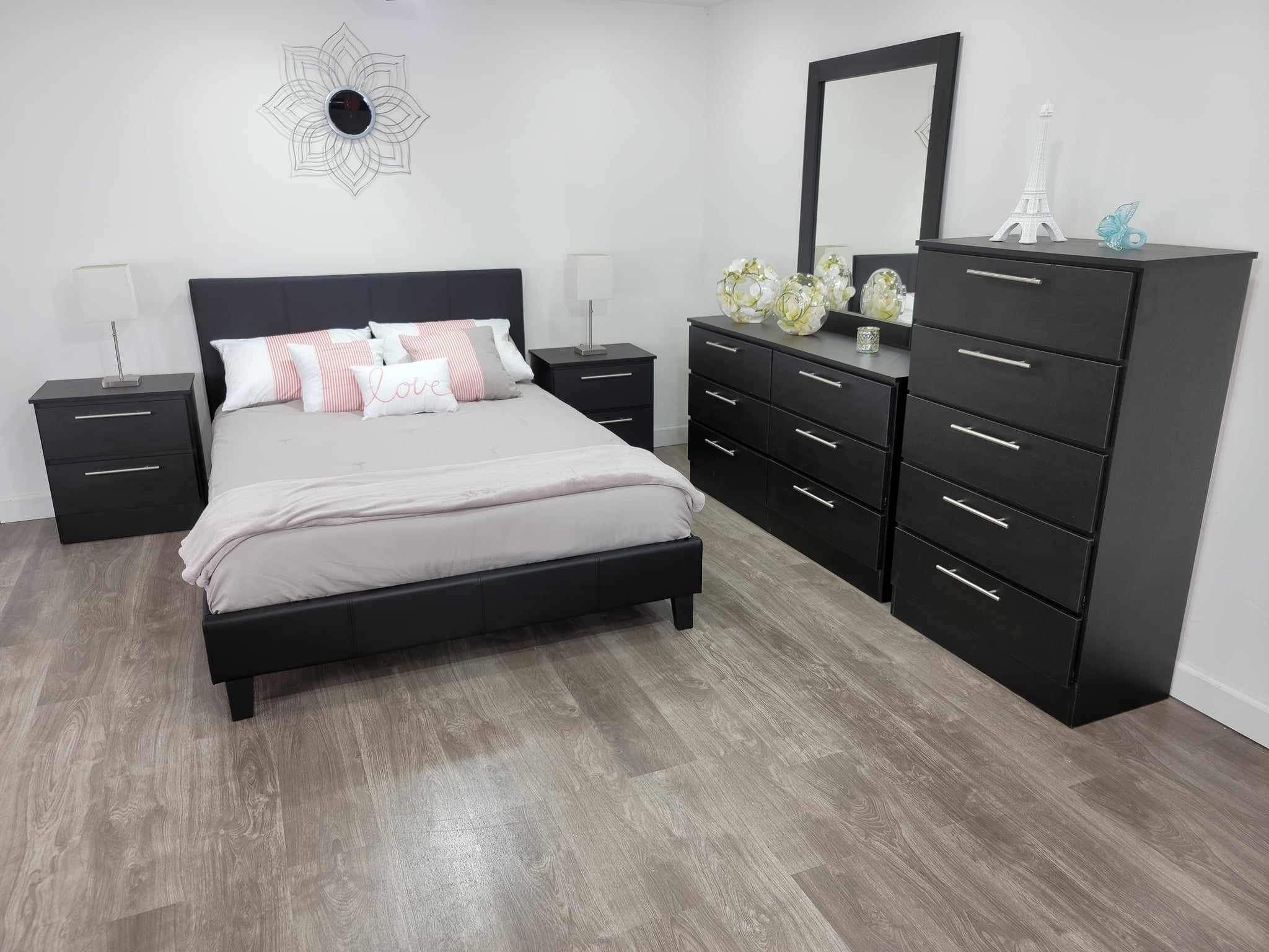 ✨ QUEEN BED FRAME / CAMA QUEEN ✨ CHEST / GAVETERO ✨ DRESSER / CÓMODA ✨ MIRROR / ESPEJO ✨ 2 NIGHT STANDS / 2 MESAS DE NOCHE 🆕✨ Brand New – Nuevo a Estrenar 📦 Ready to Deliver – Listo para Entregar YA 💸 Pay When You Get It – Paga al Recibir ➡️ Fast. Easy. Reliable. ➡️ Rápido. Fácil. Confiable.