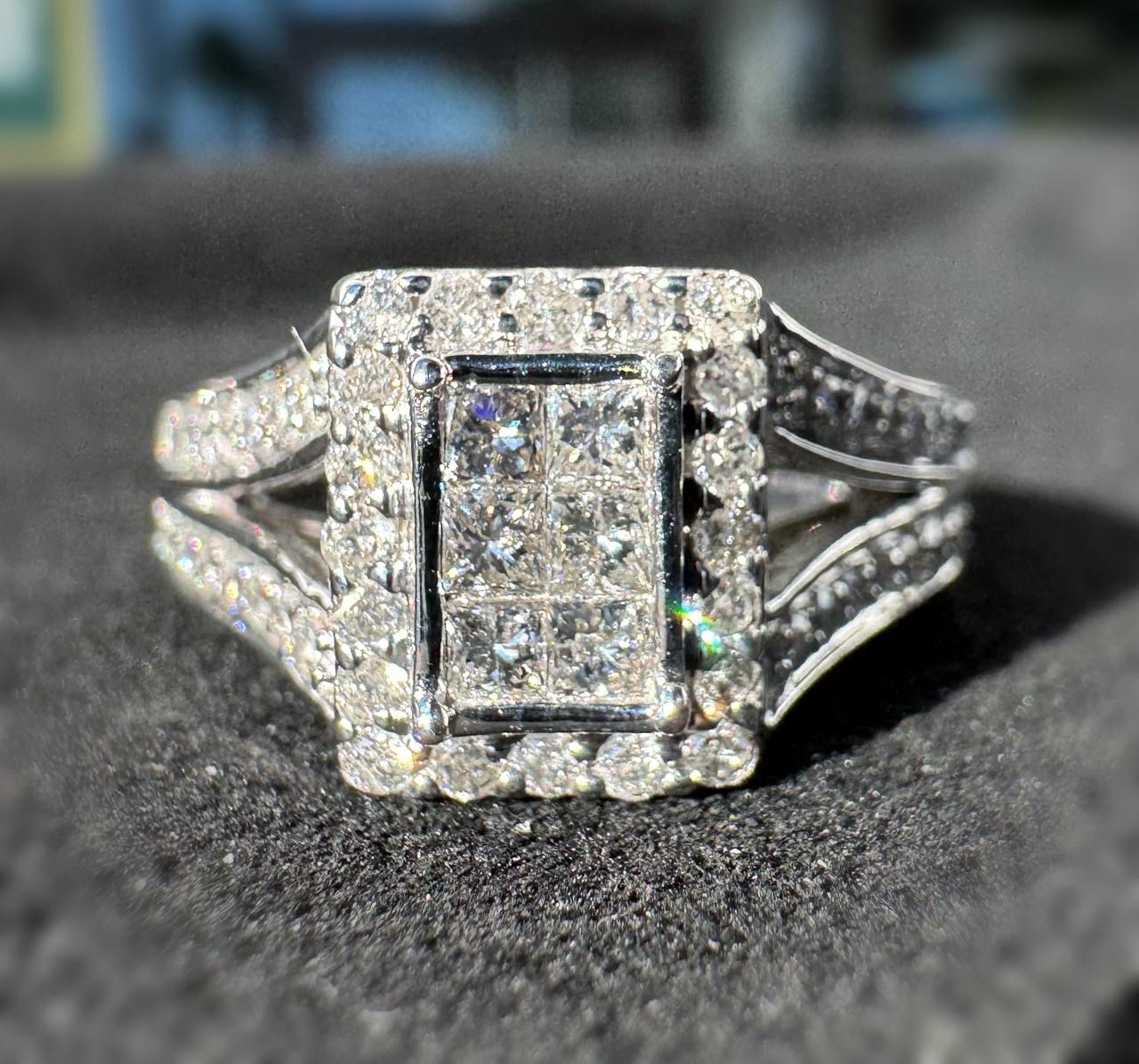 This gorgeous natural diamond rectangle frame shape ring made of 10k solid white gold ring size: 5.75 Total weight: 4.70 grams. The total carat weight of the natural diamonds princes and round cut is approximately 1.00CTW. beautiful and absolutely gorgeous. The best choice for you! Perfect gift! β€οΈππ Really unique piece πβοΈ We buy Rolex and Audemars, patek . Do layaway in VIP SHOP Coral Springs π₯ππΈ We buy gold, diamonds, silver, coins π₯³π₯