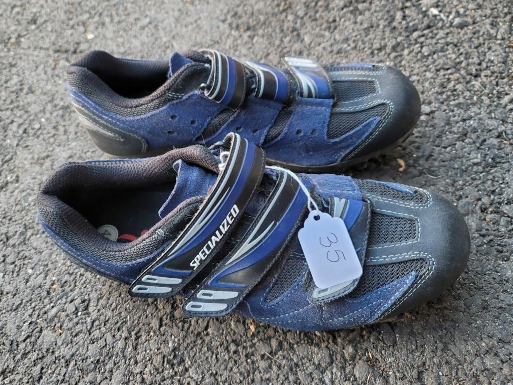 I have a bunch of Specialized mountain bike shoes that I've collected over the years that I didn't end up using very much, so I'm putting them all up for sale. Three of the pair are clipless (2-bolt SPD/Crank Brothers) compatible, and two are flat bottom. . If you buy 2 pairs, take 20% off the total, 3 pairs = 30% off, 4 pairs=40% off and 5 pairs=50% off. . * Blue three strap, SPD compatible, used once or twice, $35 . * Beige three strap, SPD compatible, used once or twice, has SPD cleats, $35 . * Beige/Black lace up, SPD compatible, used a few times, $35 . * Black lace up, flat bottom, used once, $50 . * Black lace up, flat bottom, used a few times (but has wear from being in storage), $25