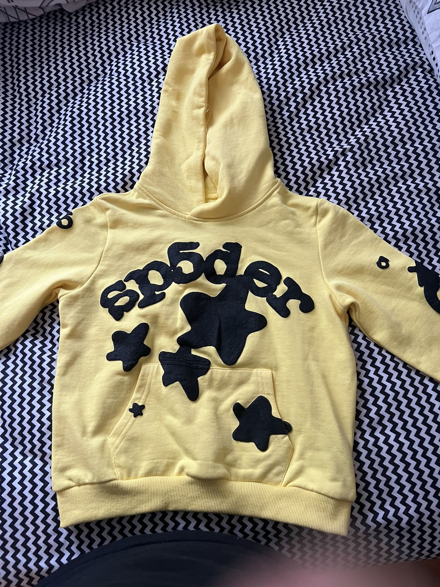 The Spider hoodie is more than simply a bright piece, it’s a well-made clothing that blends style and maximum comfort: High-Quality Fabric: This hoodie, made from an 80% cotton and 20% polyester combination, strikes the ideal balance between softness and durability. The cotton makes it breathable and cozy, while the polyester ensures the hoodie retains its shape and lasts longer, even with regular wear. Vibrant Yellow Color: Bold and dynamic, the yellow hue makes a statement wherever you go. Whether worn with jeans or joggers, this sweatshirt gives an unmistakable splash of color to any look. It’s more than simply a hoodie: it’s a conversation starter! Signature Sp5der Branding: The hoodie features minimalist branding with the signature Sp5der logo subtly placed, adding authenticity and style without overwhelming the design. It’s perfect for those who appreciate modern streetwear that focuses on quality over excessive branding.