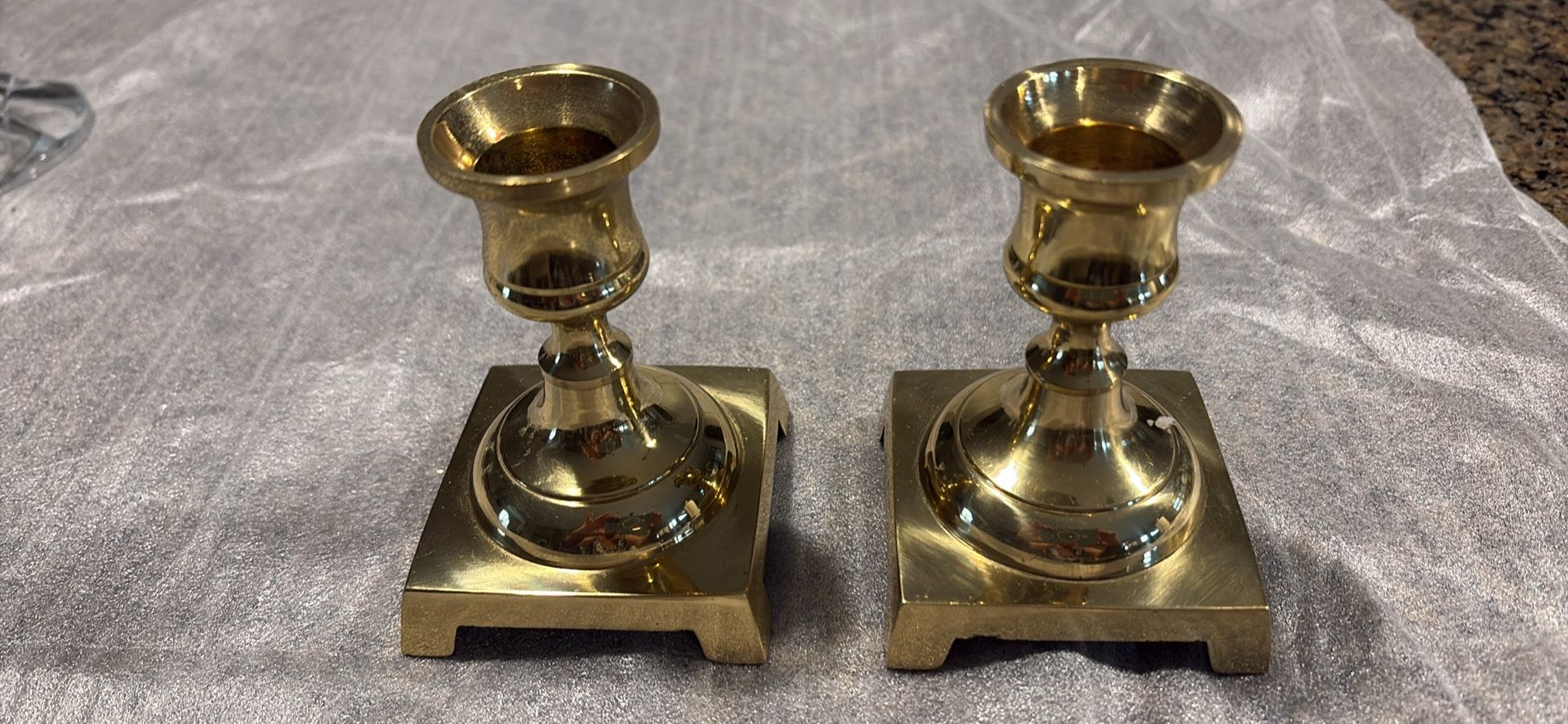 Vintage Brass Candle Holders, 2-1/2" x 4"