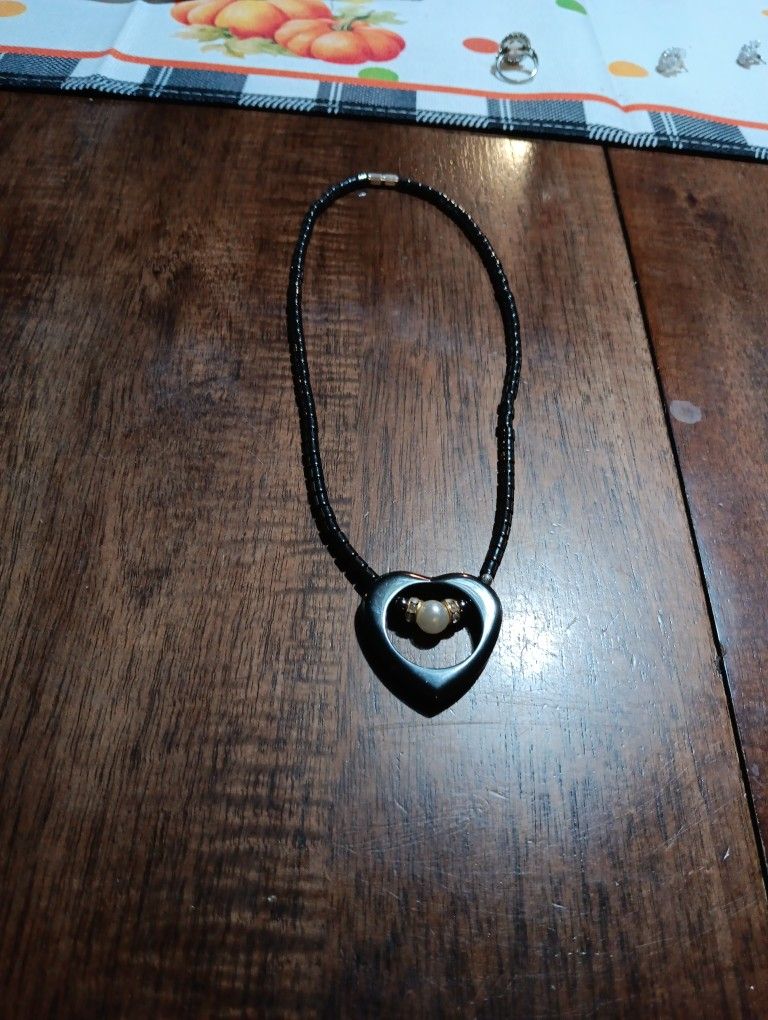 Black Beaded Heart Necklace