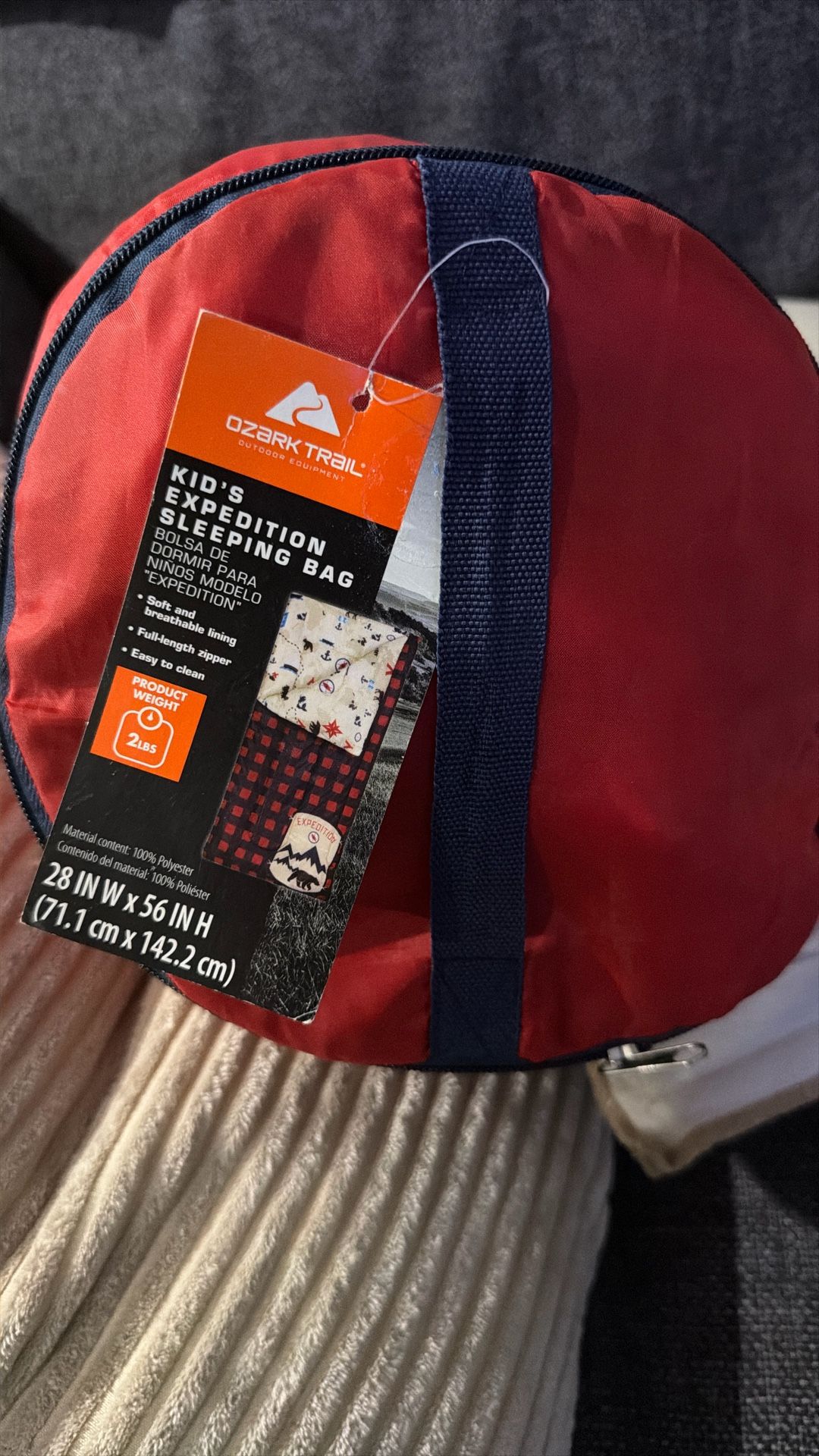Ozark Trail kids sleeping bag. New never used. Can be used for camping, sleep overs, over night camps. 28in wide 56in height $15 or best offer