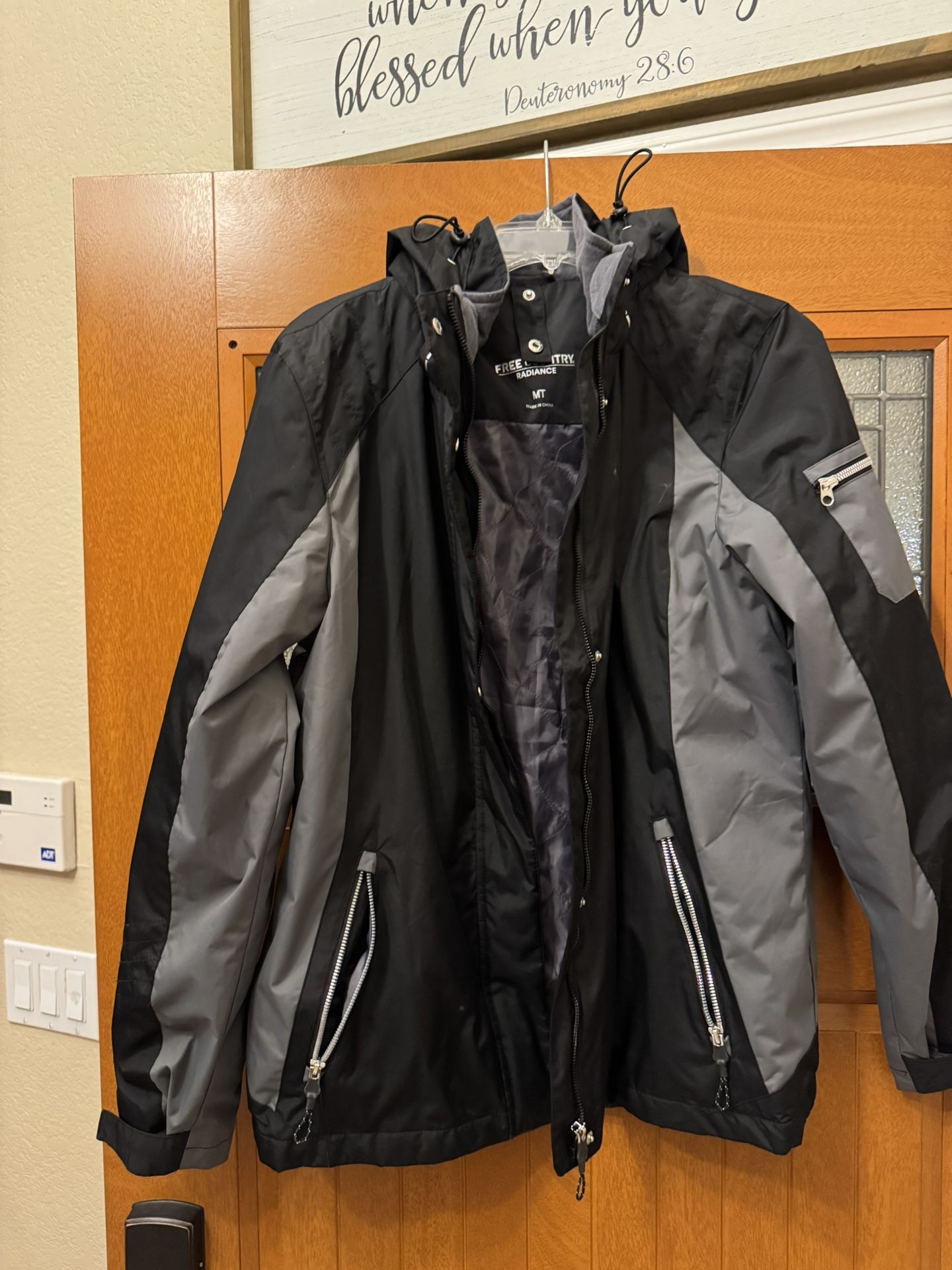 Size Medium Tall Good shape - no rips, tears, etc and smoke free home.