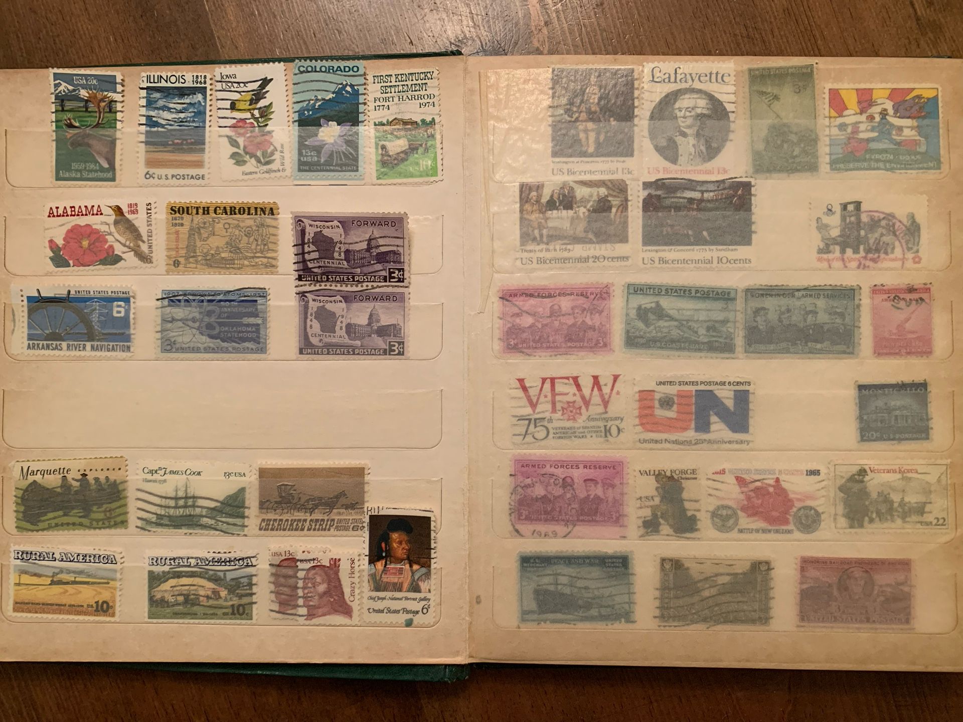 2 Stamp albums and box of glassier envelopes with US and International stamps from mid-1900βs. Photos just show a sample. Many more stamps than in the photos! Great variety! Fun for Christmas gift *Also selling antique radio Cash only Will meet at Hickory Hills Police station