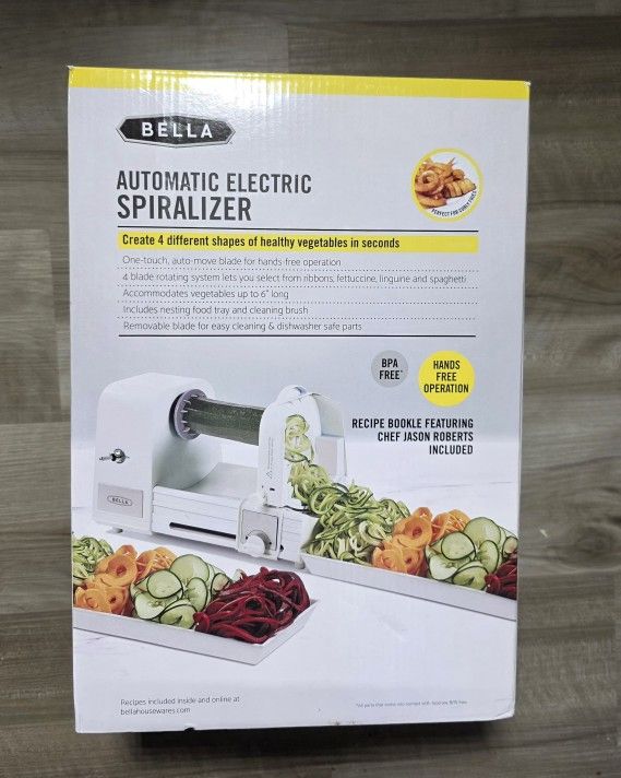 $35 BELLA 4-in-1 Automatic Electric Spiralizer & Slicer | Quickly Prep Healthy Veggies or Fruit, Spaghetti Noodles or Ribbons | Easy To Clean | Recipe Book Included
