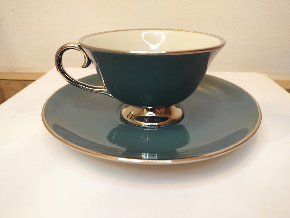 Hello everyone π I'd like to sell a Full set of dinnerware with dish storage protectors. This is a beautiful, high-quality Vintage Flintridge China set, a premium American porcelain manufacturer from Pasadena, California (1946β1970) Teal/Aqua Blue with gold stripes The set includes: - Oval Serving Platter 16x12.5" - 1 pcs - Dinner plates 10.7" - 8 pcs - Salad plates 8.5" - 12 pcs - Desert & butter plates 6.3" - 12 pcs - Tea cup Saucers 6.3" - 12 pcs - Teacups - 12 pcs Everything is in very good shape