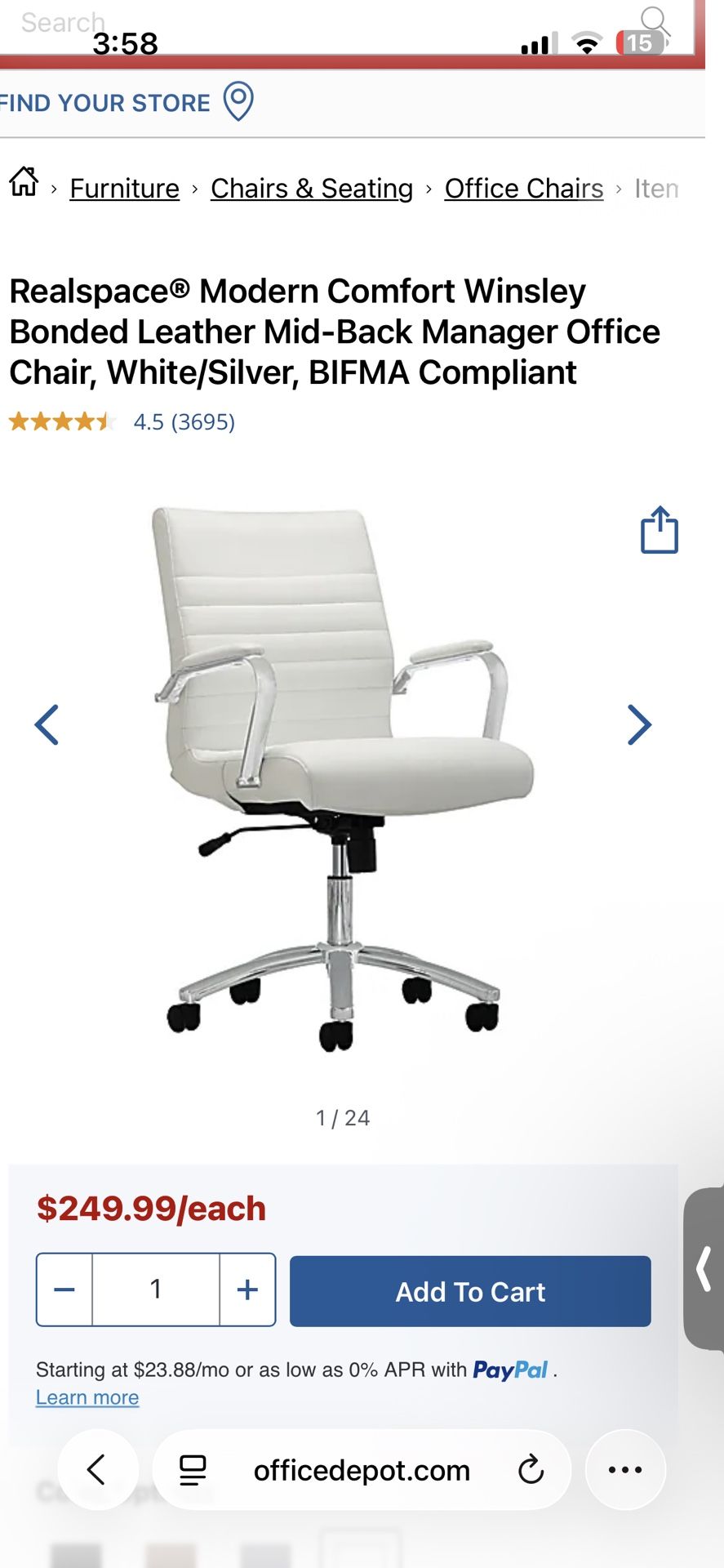 Need To Go -Office Chair White- Retail $250