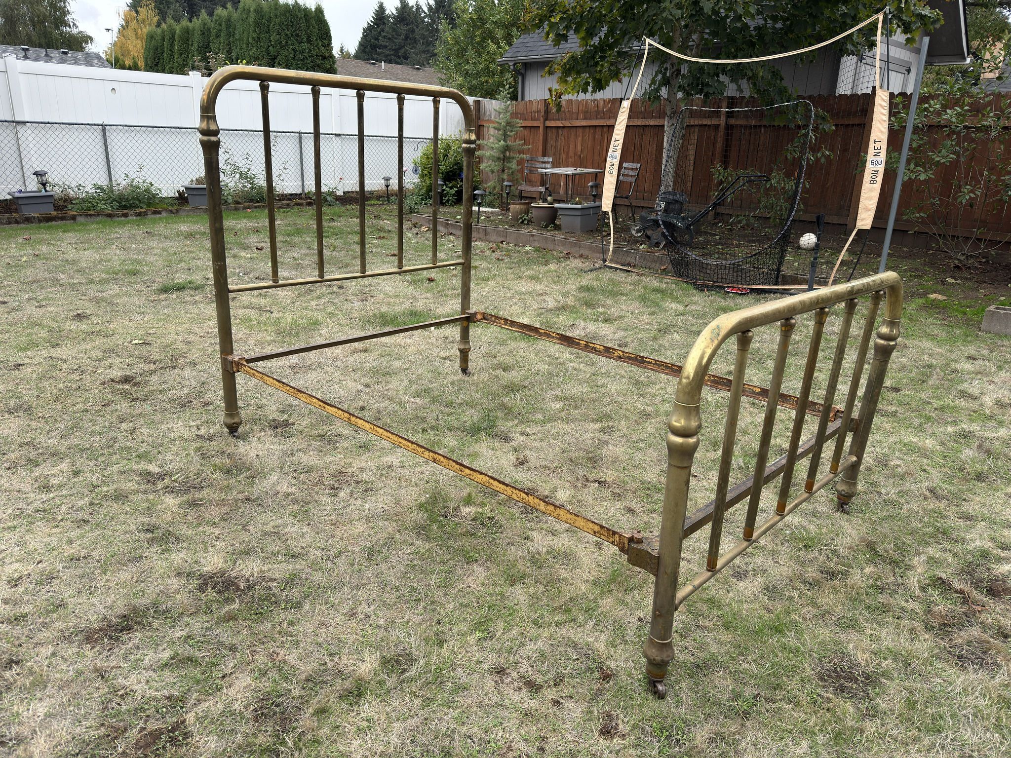 Old Brass Cast-Iron Bed Frame it is a 4 piece on wheels.