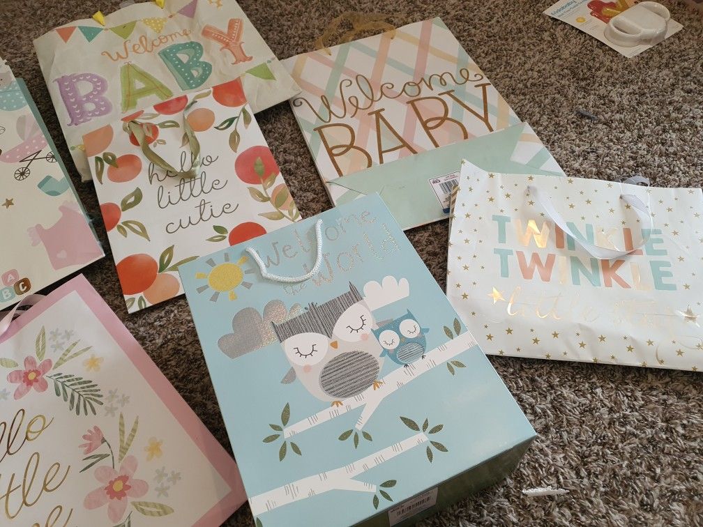$1 for each bag, $1 for 4 pieces of tissue paper. Variety of sizes