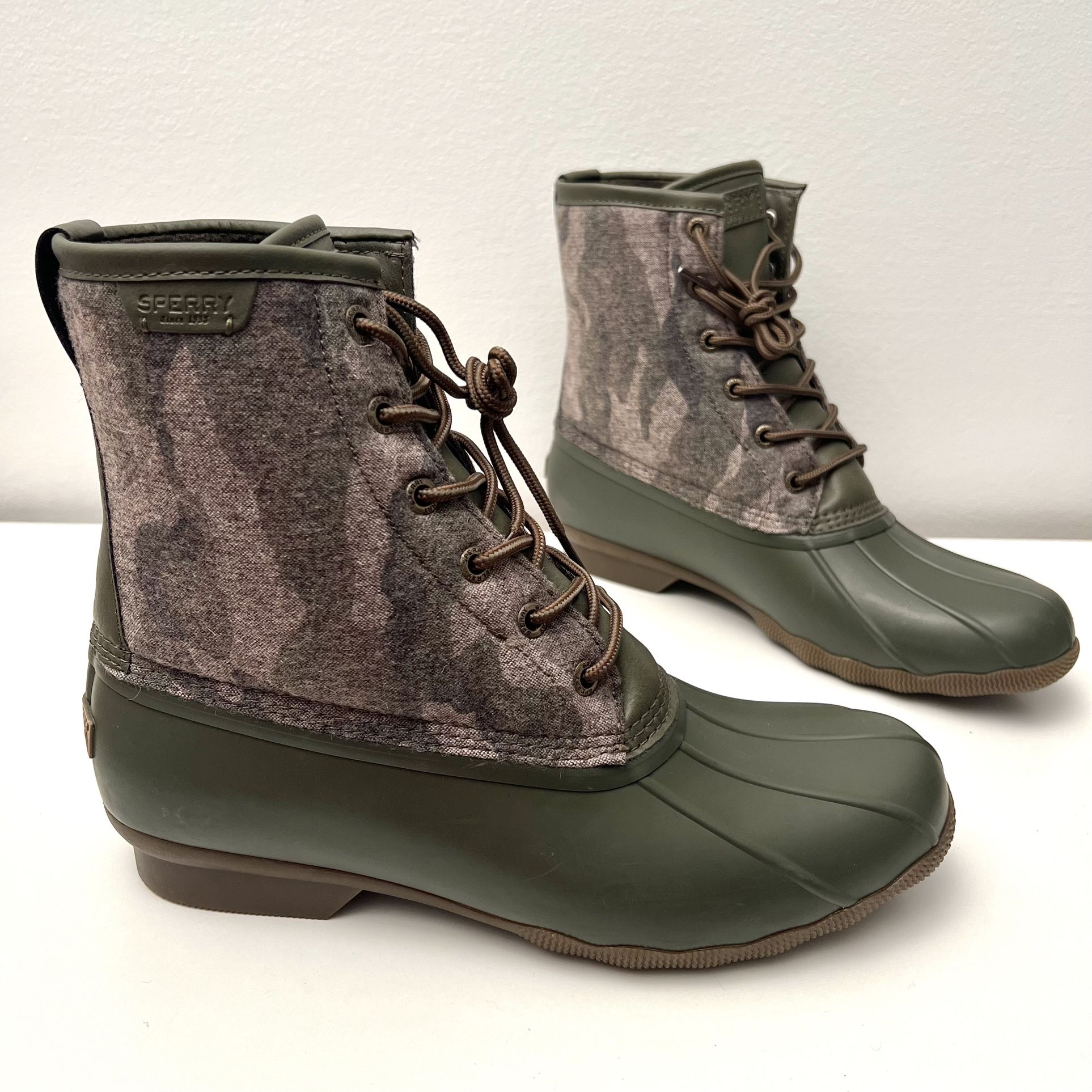 Sperry Saltwater Rain Boots Olive Green/Camouflage Water Resistant Men’s Size 10
