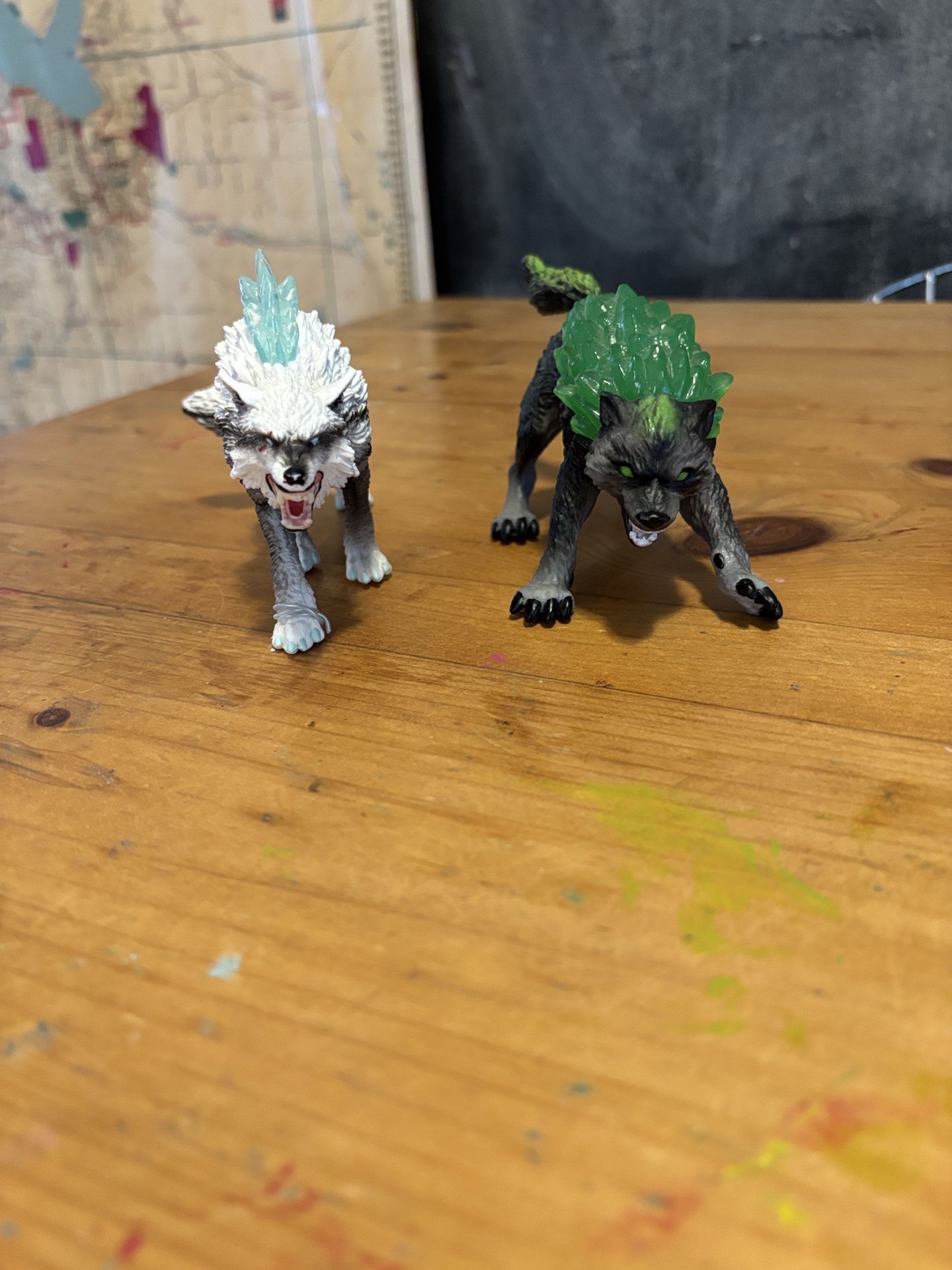 Schleich snow wolf and granite wolf. Perfect for imaginative play. Great condition, never played with, smoke free home with pets. Each about 7 inches long.