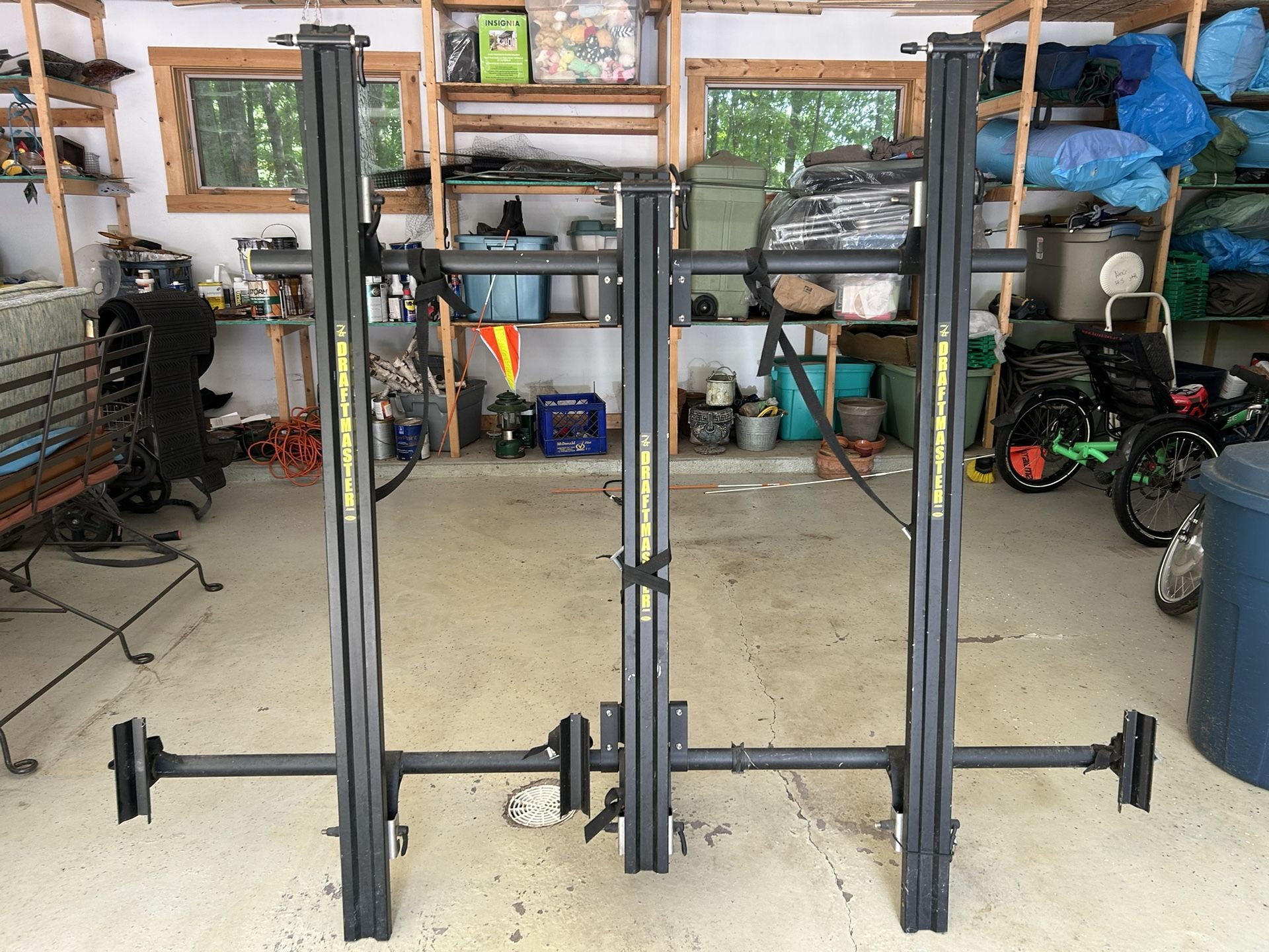 Draftmaster Hitch rack - early version of a HR-2dTrike configuration of the Draftmaster, plus a center mount for a 2-wheeled bike. It’ll hold two tricycles and a bicycle. Very sturdy.