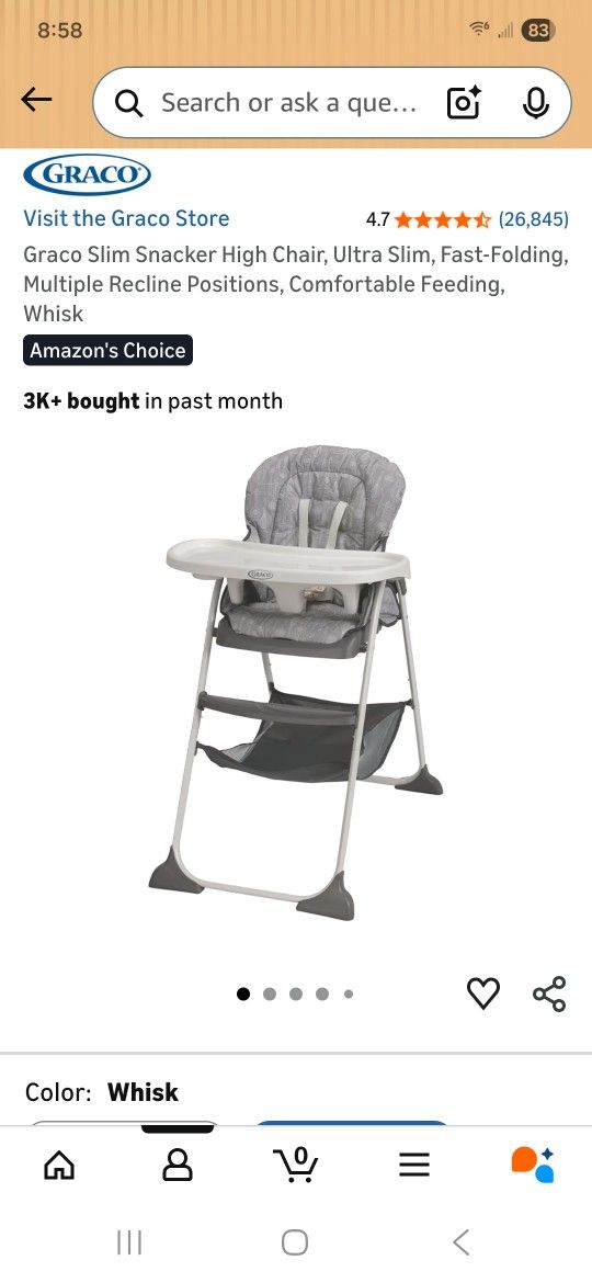 Barely used, very clean and very good condition, sturdy and from smoke and pet free home. Graco Slim Snacker High Chair, Ultra Slim, Fast-Folding, Multiple Recline Positions, Comfortable Feeding