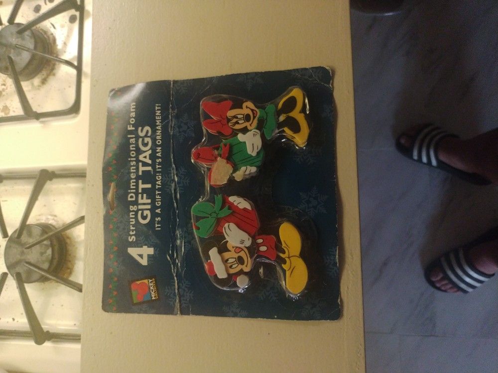 Four Strung Dimensional Foam Gift Tags Disney Mickey And Minnie