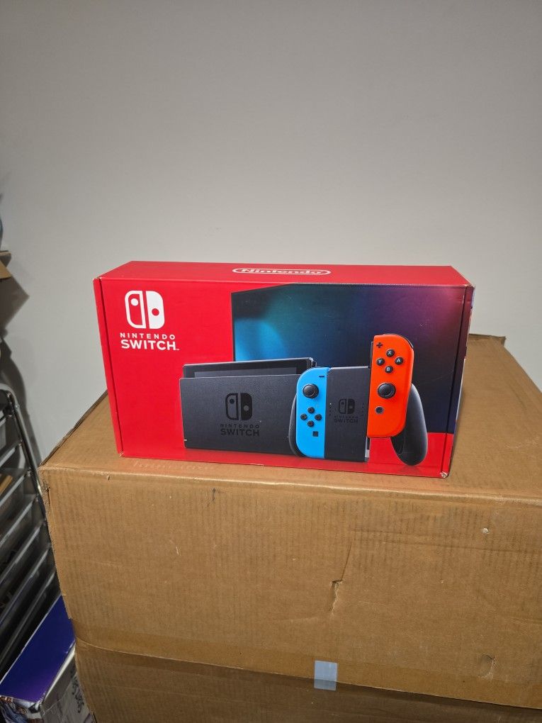 Nintendo Switch Console with Neon Blue & Red Joy-Con.