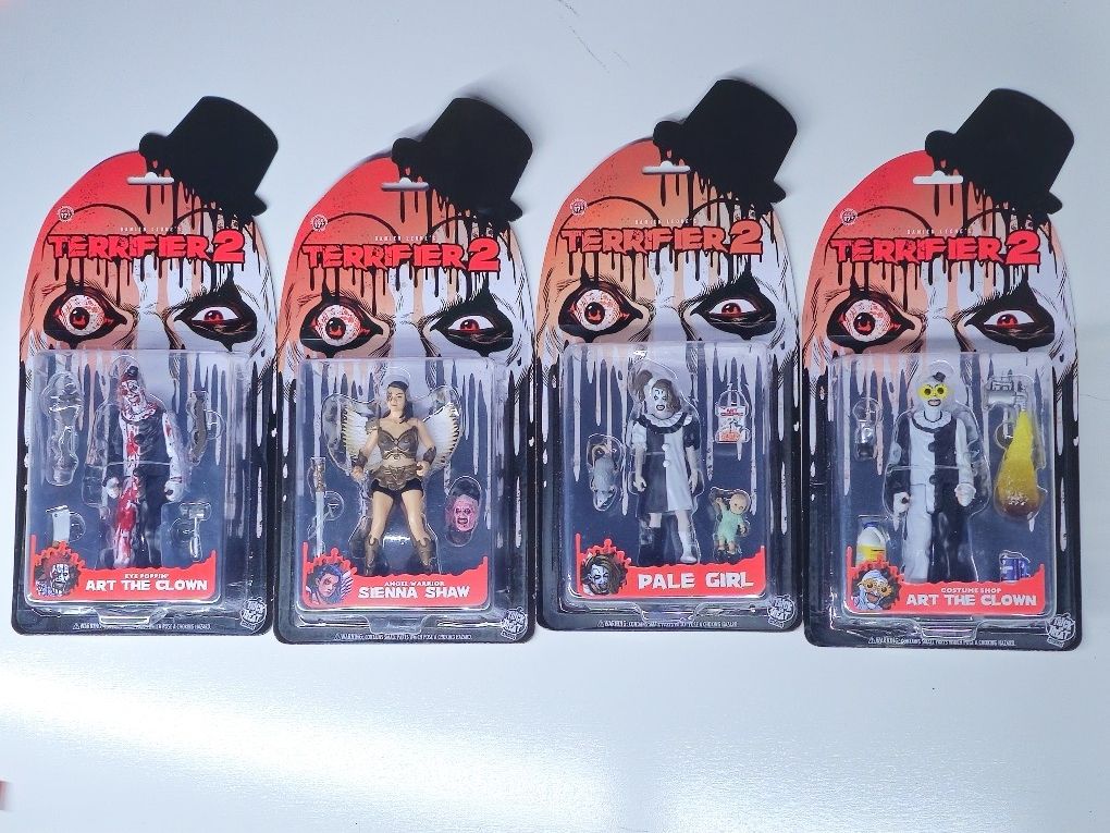 Complete Trick or Treat Studios Terrifier 2 Action Figure Set — all four characters, factory sealed and in excellent condition. These are officially licensed horror collectibles from the hit film Terrifier 2 — extremely hard to find as a full sealed set. 🩸 Includes: Art the Clown (Bloody Version) Art the Clown (Clean Version w/ Bleach Tank) Sienna Shaw (Angel Armor) Pale Girl