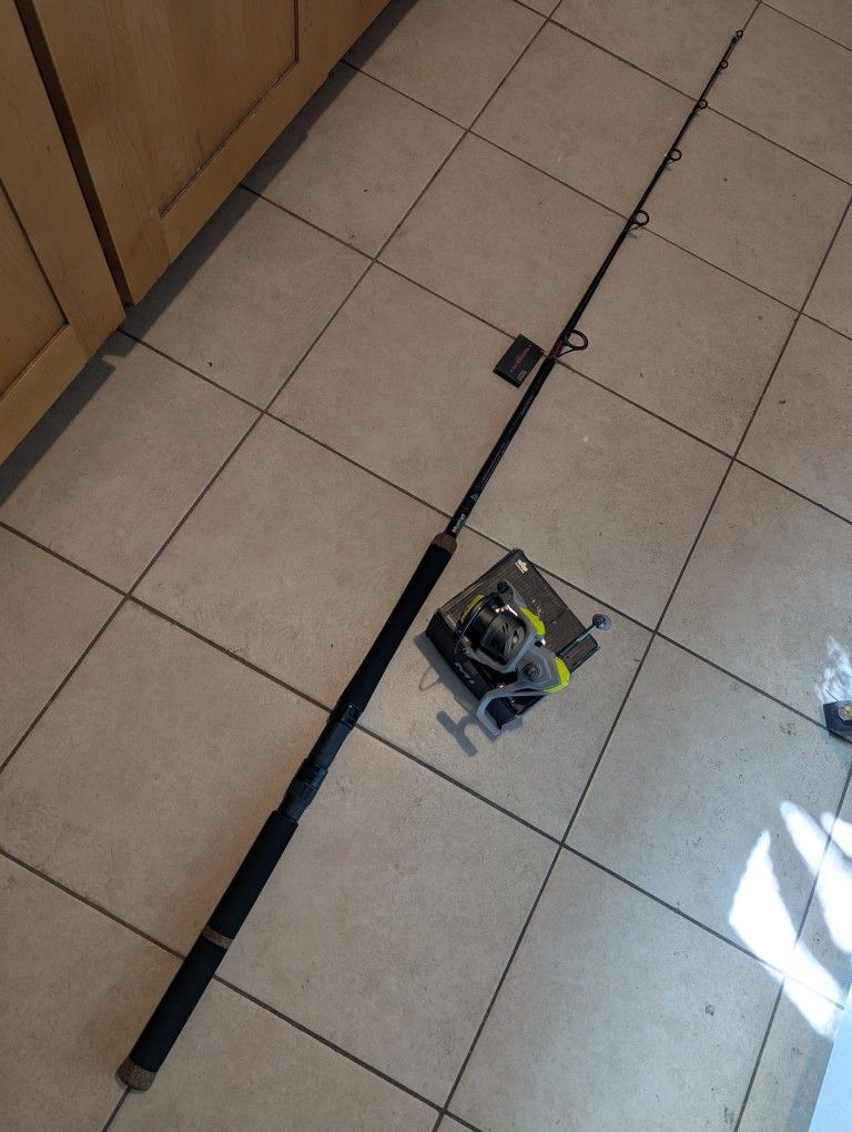 See post = still available Cash and pickup only New mustad spinning rod Very strong, indestructible. Perfect for boat fishing, pier fishing. Medium action Line - 30-50 lbs Lure- 8oz New handing spinning reel 4k size Line - 50lbs 550 feet. New Mustad 6' spinning rod and Handing 4k Spinning reel combo