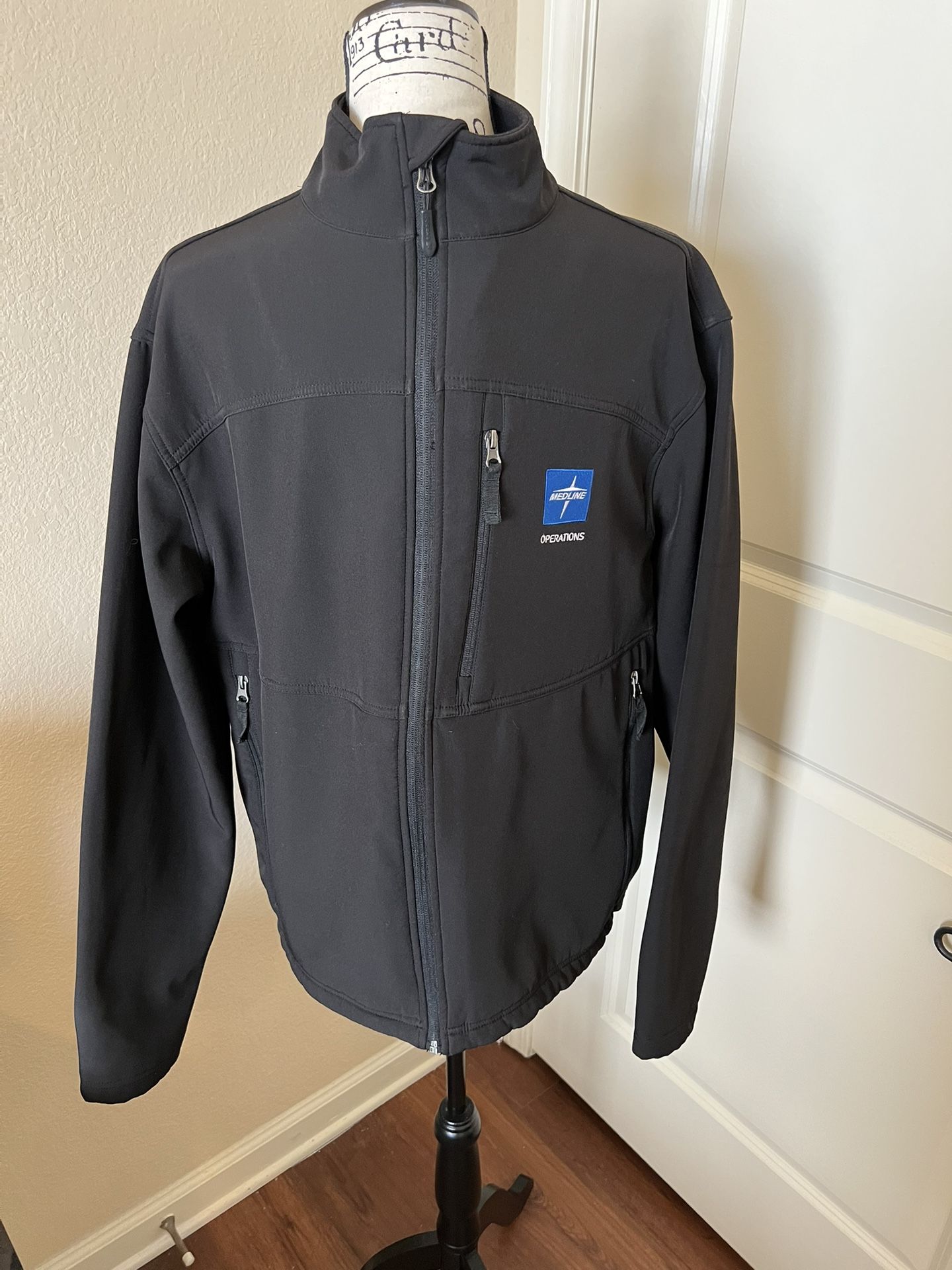 Fossa men’s jacket in black with Medline branding in size large. Neoprene-like exterior with fleece interior. Has three zippered pockets and bungee cords at the bottom of the jacket to tighten it. Sleek but ultra warm at the same time! Smoke-free home. Reasonable offers considered.