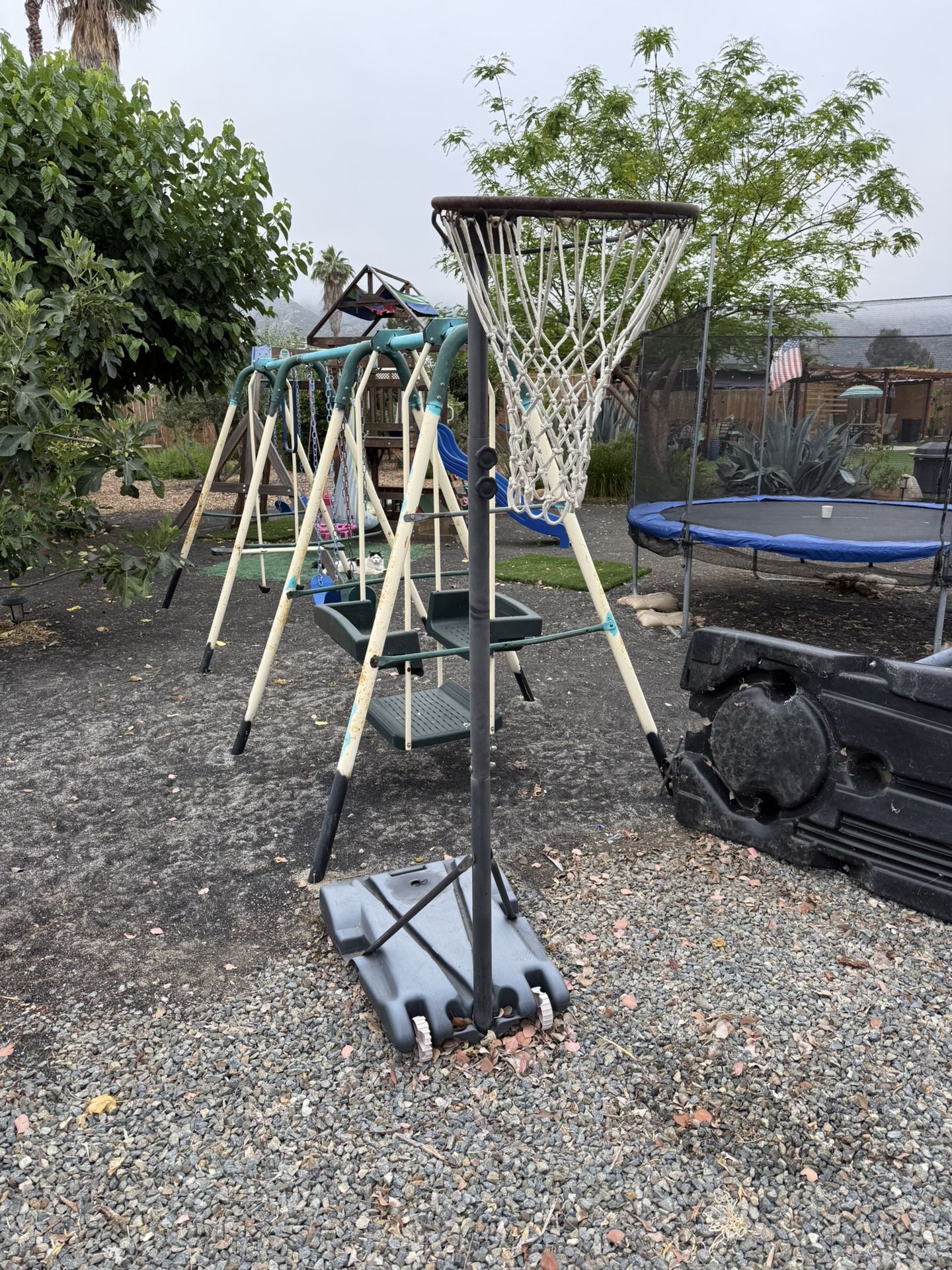 Basketball hoop, with base you fill with water. 75' tall.