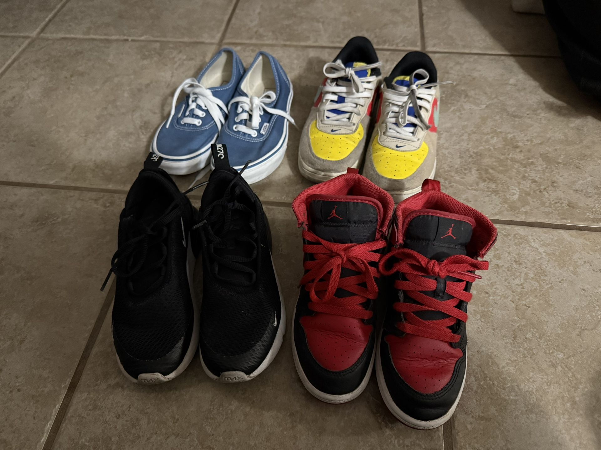 Vans size 3 Air270 size 1 Jordans size 1 Colorful nikes 1.5 Almost new, just dirty. 10 each pair.