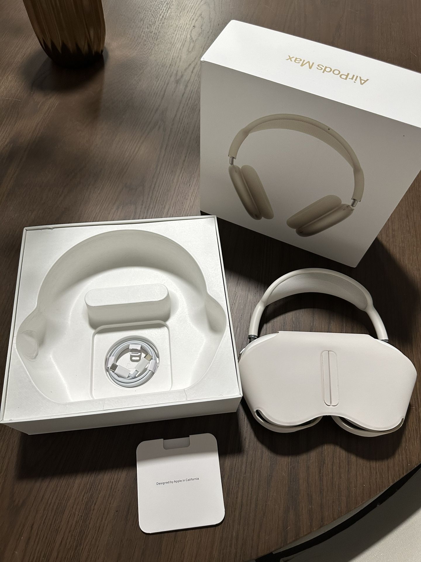 Apple AirPods Max for sale! I’ve only worn them once since Christmas and they are BRAND NEW. No scratches or dents and Charger comes included! I’m selling because I was gifted another pair but in Black and I’d prefer that color over the Starlight color. (Note: the box it came in is dented from how it was shipped to my house but the headphones are perfect) AS IS First come First Serve!