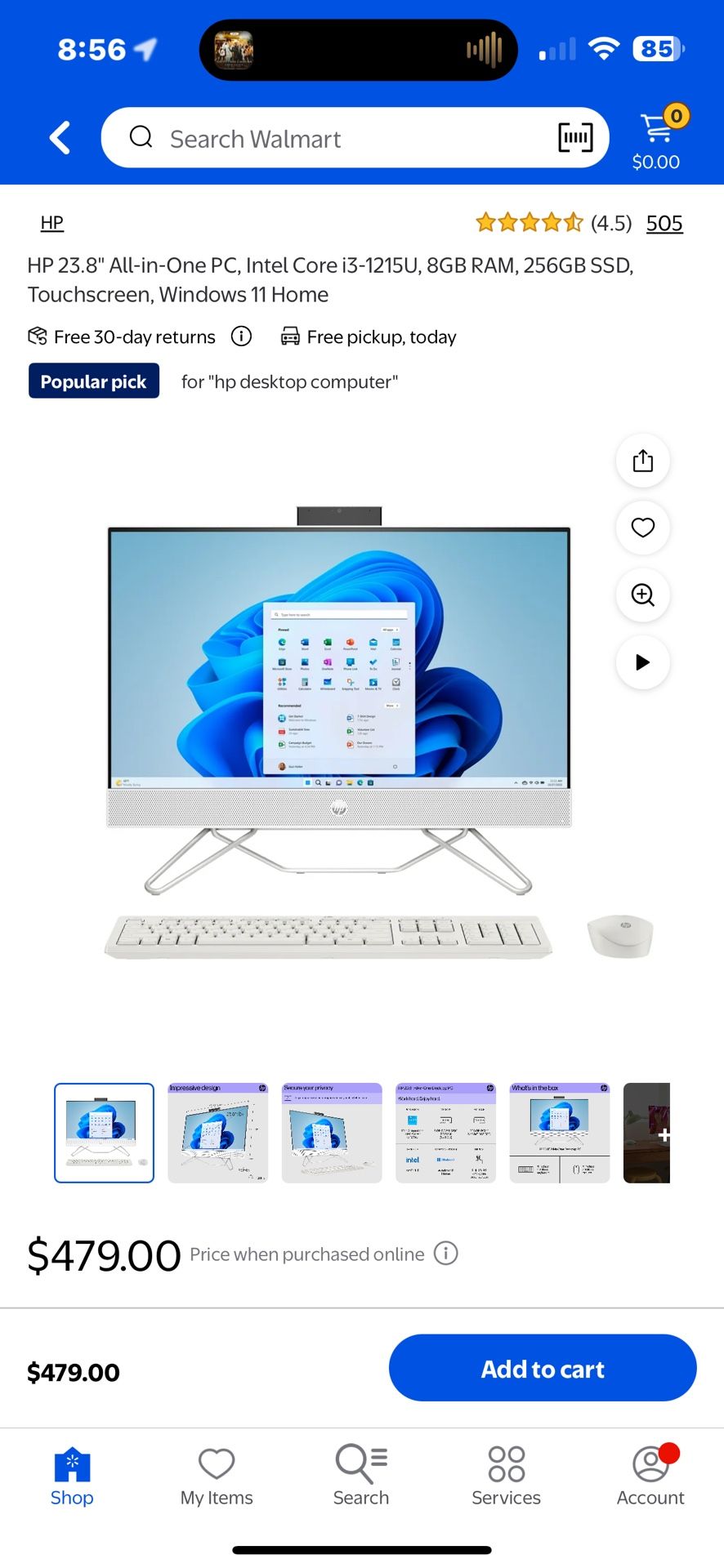 HP 23.8" All-in-One PC, Intel Core i3-1215U, 8GB RAM, 256GB SSD, Touchscreen, Windows 11 Home
