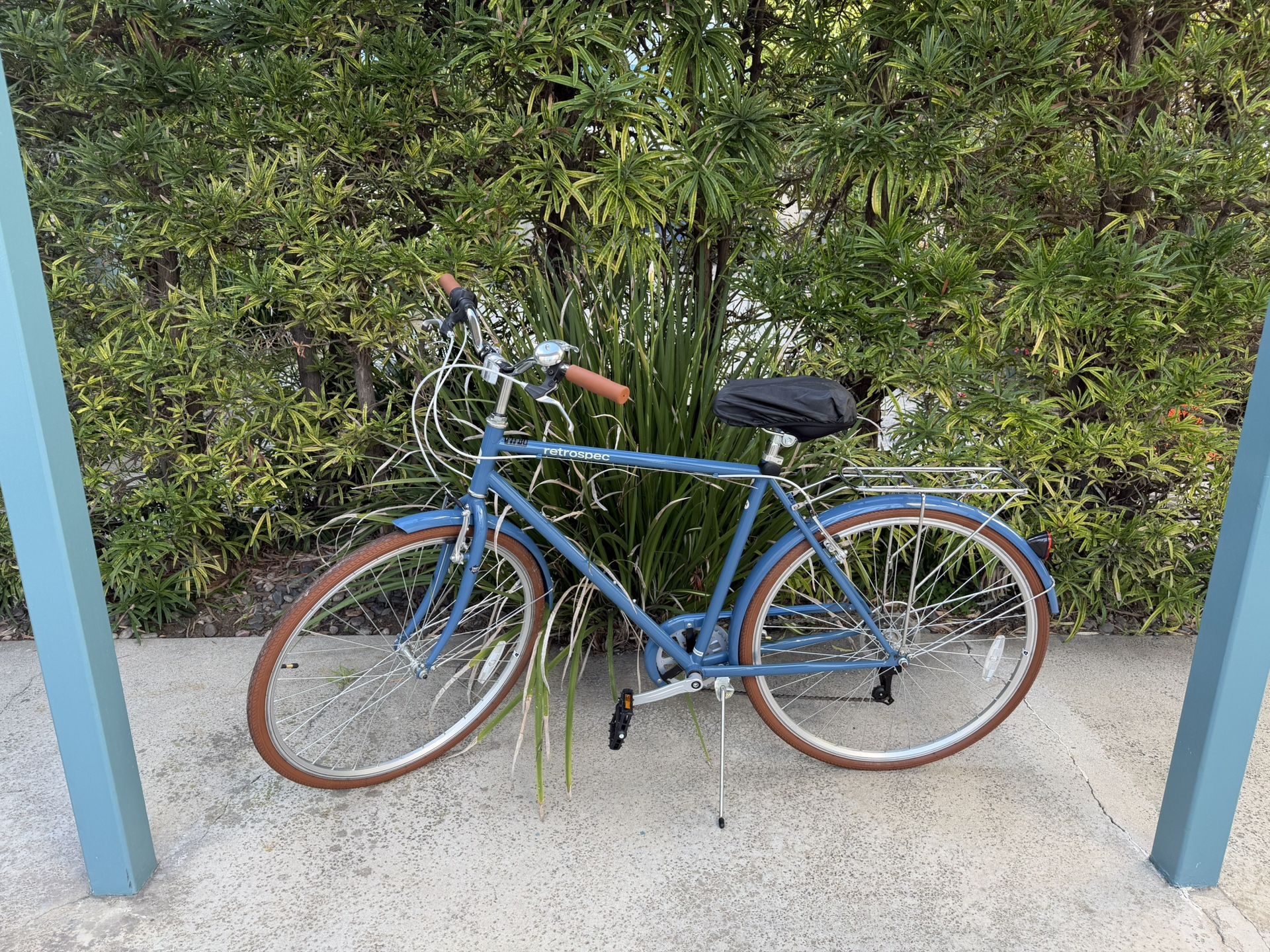 Bought my Retrospec Beaumont City bike last summer and rode it a total of four times. Like new and in excellent condition. Have all the accessories with it too. Spend 50$ for putting it together ( not the easiest to do it yourself). So spent a total of 470$ on it. Check specs here: https://offerup.co/faYXKzQFnY?$deeplink_path=/redirect/ Size: M Color: Navy blue Selling bike and accessories. DM me your best offer. (Bike air pump not included)