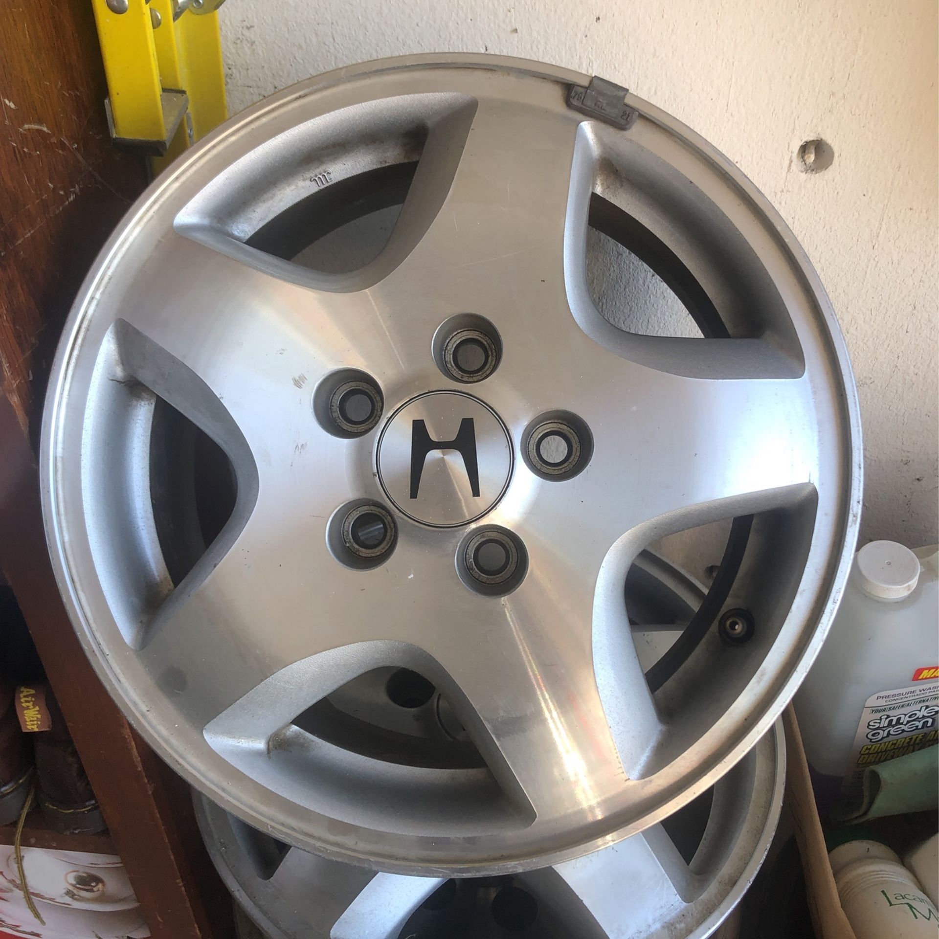 See pictures 5 Spoke Factory Alloy Rim with Center Caps Size: 15” x 6.5”, 5 Lug, 115 mm Bolt Pattern Excellent condition