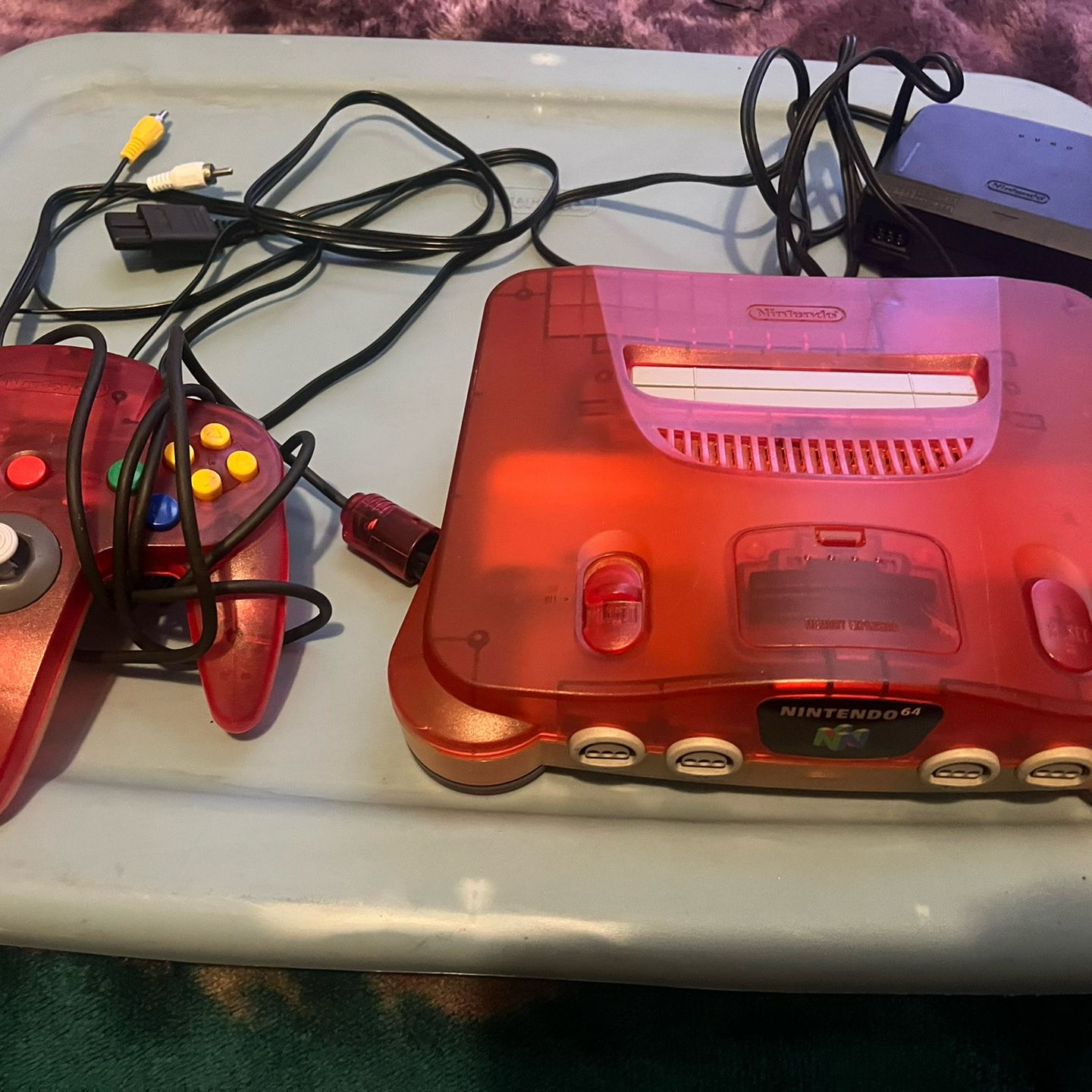 Red and Clear Nintendo 64 With Cords And Control oem authentic