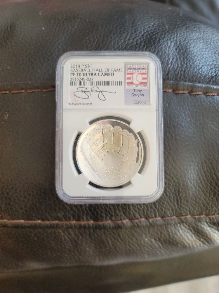Perfect grade ms70 Tony Gwynn Autographed silver dollar. Hall of fame ultra cameo proof