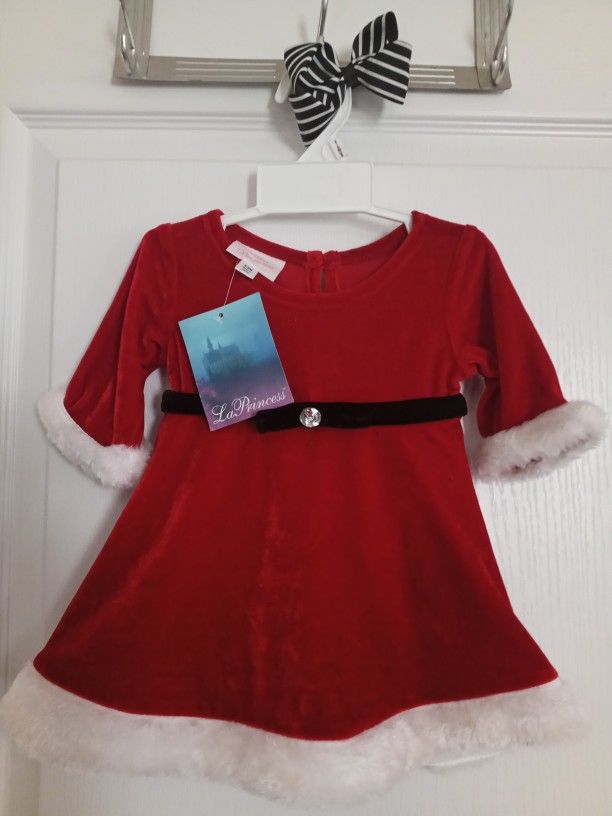 Just precious! This infant Santa dress will look just beautiful on her. It come with white underwear and he hair clip. Great for Holiday pictures with family & friends. Size 3-6 mos.
