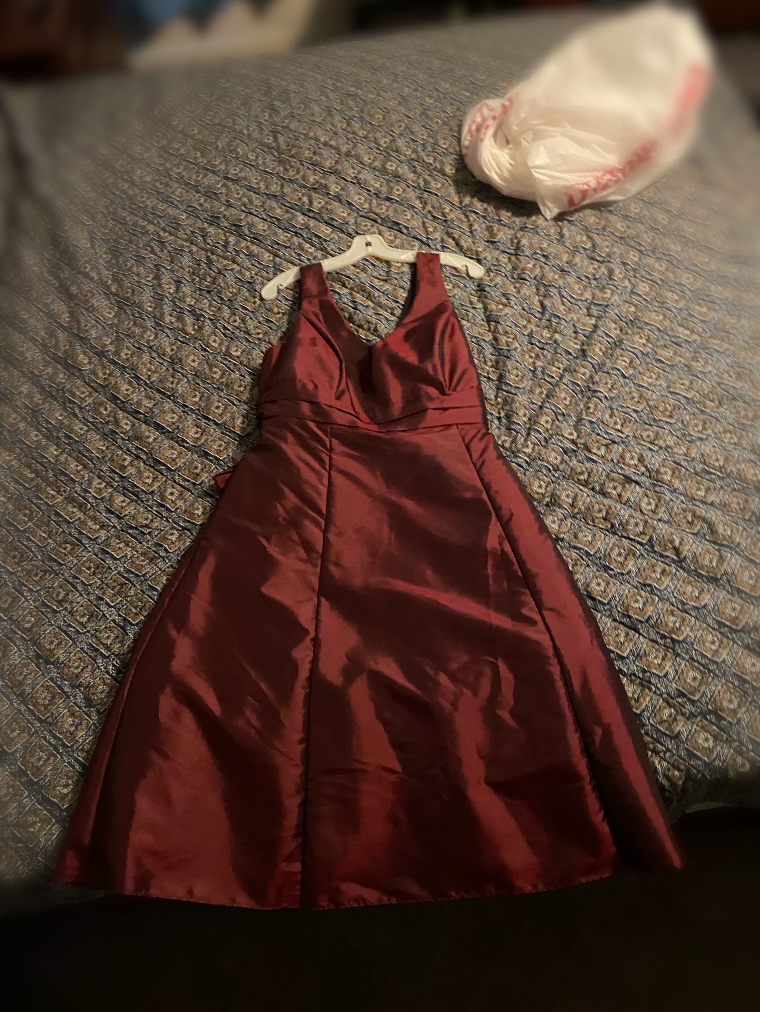 Davids bridal dress size 18 maroon color lightly used maybe worn once asking 50 obo