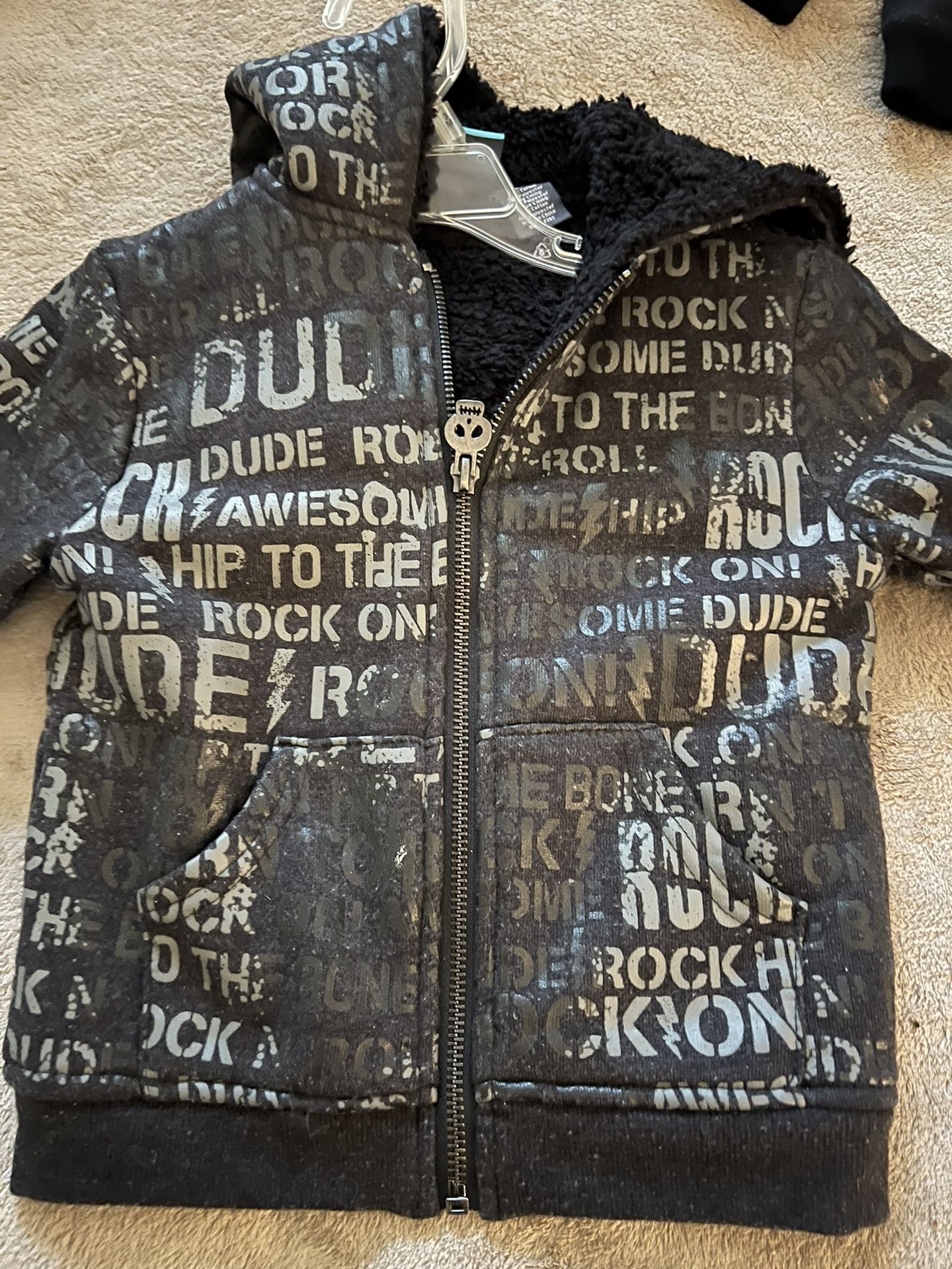 Toddler boys black hoodie sweatshirt with fur. Size 18-24 Months.