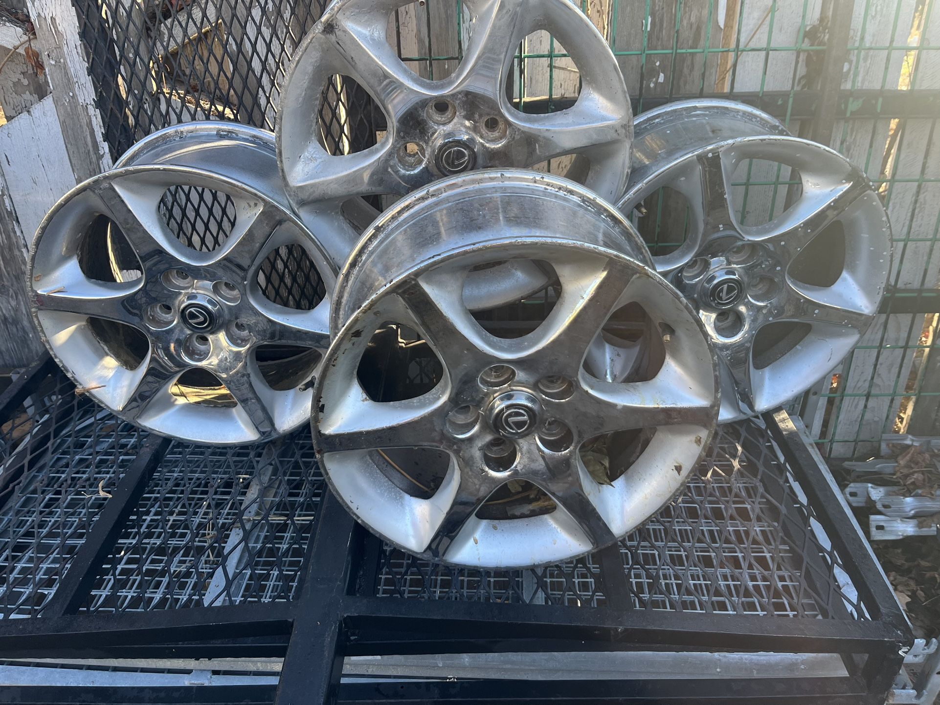 17 " alloy wheels set of 4 Save lots of money and your tires mount your snow tires on their dedicated wheels. I bought for a trailer, but the center hub was too small. Also have 2 set of 17 inch studded snow tires. Pictured $300 ea set Very nice tread will give buyer a couple hours to make sure they are mountable. These are not perfect condition but perfect for winter. Some scratches scrapes exactly as pictured will hold while you're coming with good communication.