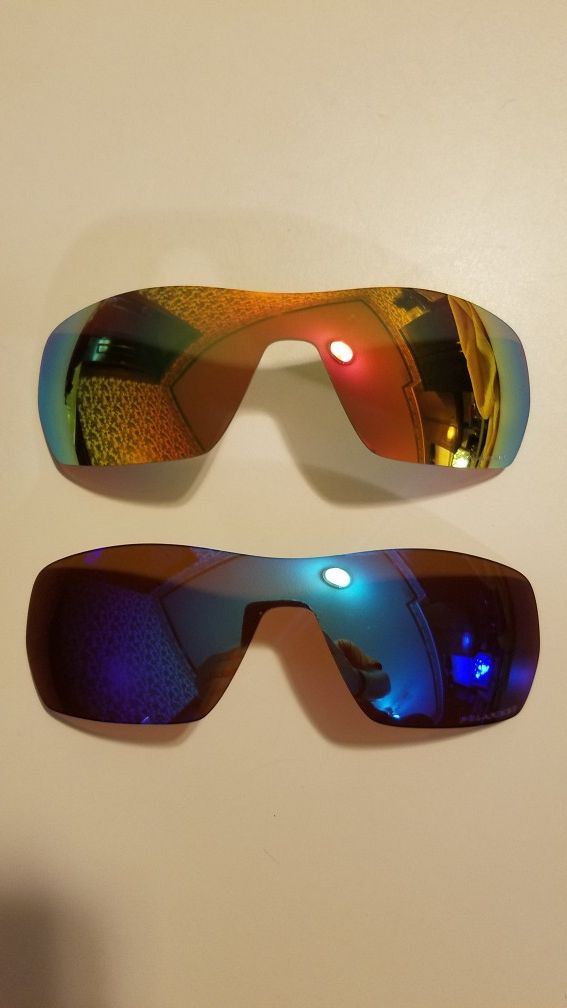 Oakley Off Shoot polarized lenses. With etching. Blue and fire red. 60$ for both or 30$ a piece OBO!