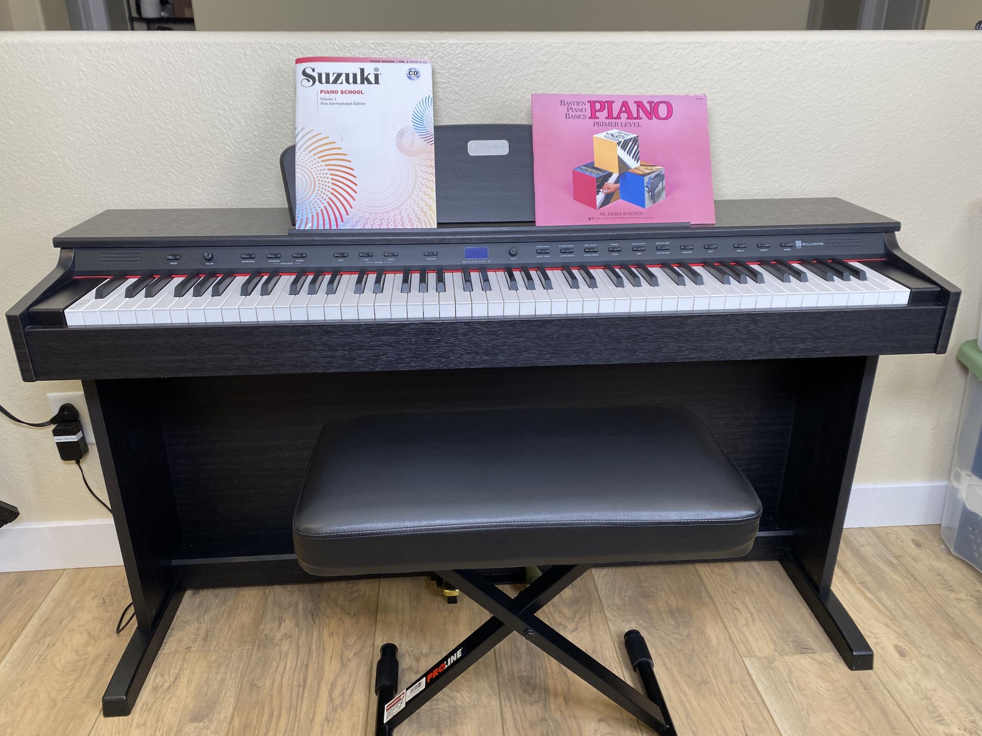 Williams Rhapsody 2 88-key digital piano. Comes with: – Bench – Beginner books – Built-in stand Fully functional. A few keys occasionally stick (reflected in price). Great affordable beginner setup. Pickup near Rainbow & Robindale. No holds. First come, first served. Must bring help to move. Message only if ready to schedule pickup.