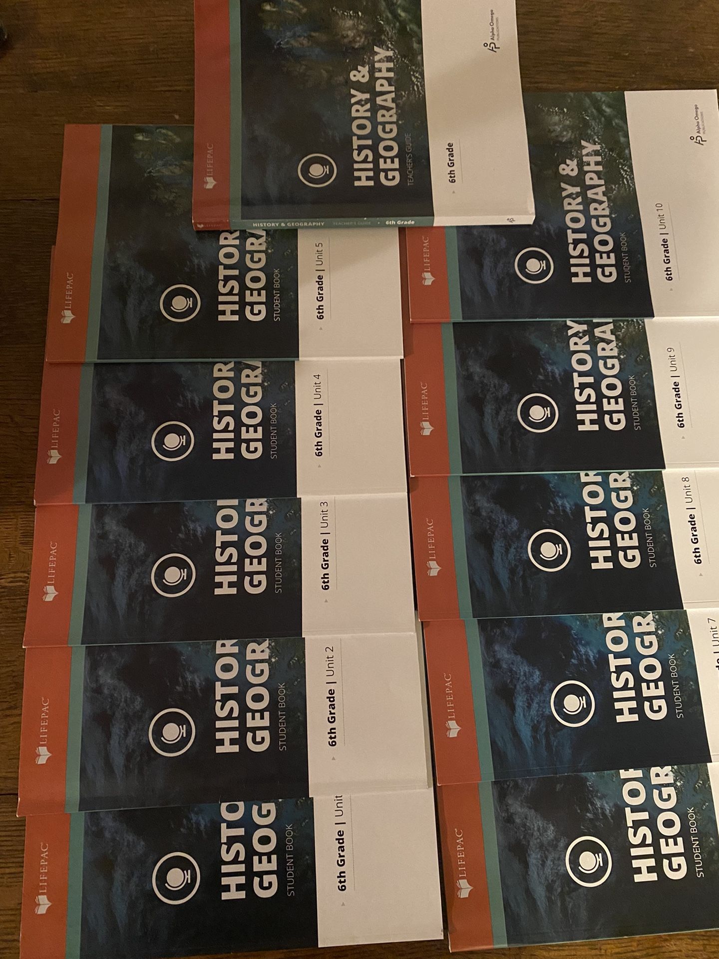 LIFEPAC 6th Grade History & Geography Set. Part of Book 1 and 2 are written. Student and teacher book.