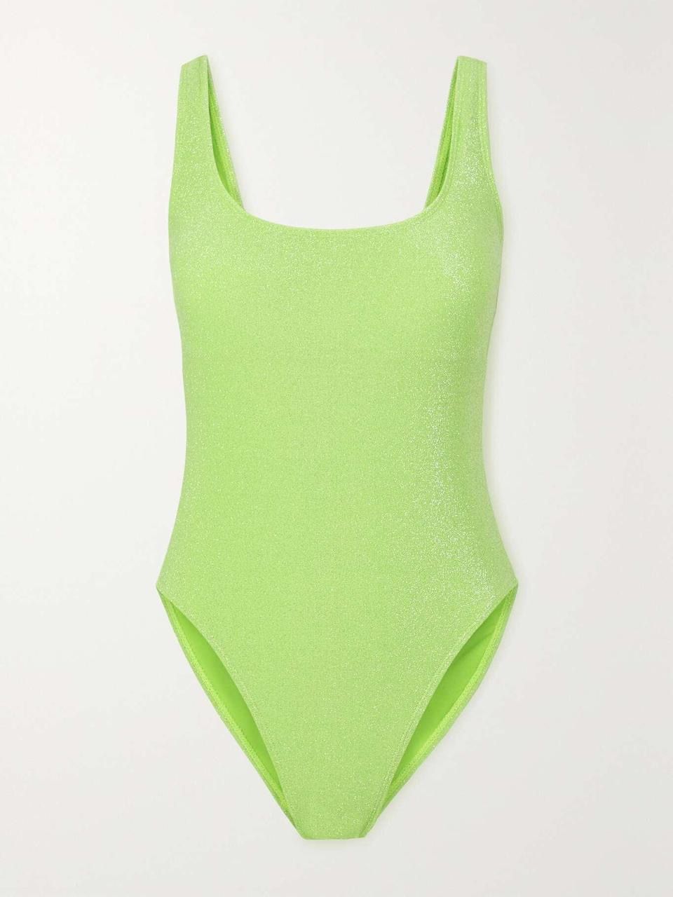 Good American Sparkle Modern Metallic Neon Swimsuit Size : 8 Color: neon green / sparkle