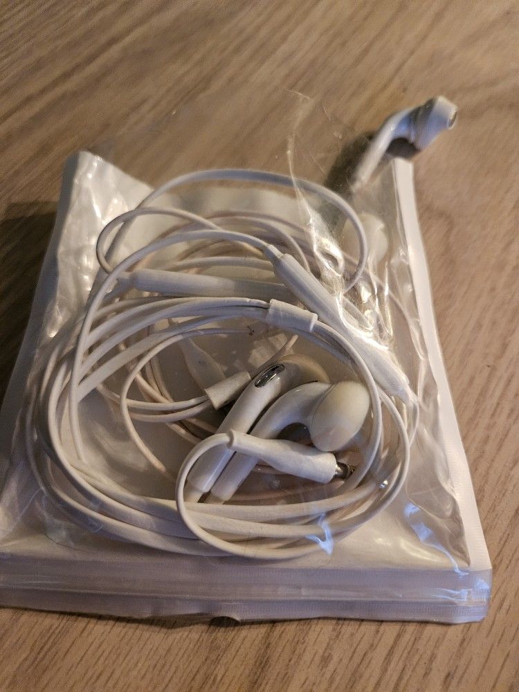 2 pack earbuds, NEW, volum control, mictophone, sweatproof, lightweight, IOS. ANDROID. My new phone has no jack to use them. 2 in opened package, $9.99