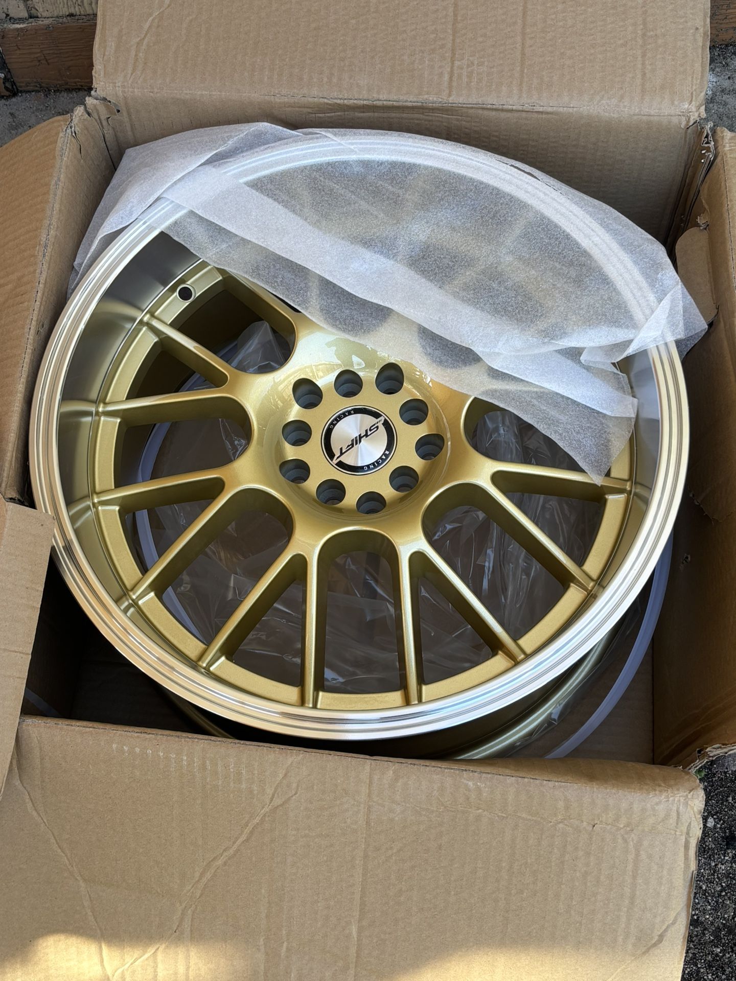 Design: Multi-spoke style with center cover of the Shift brand. Application: Available in various patterns of stus such as 4x100, 4x114.3 or 5x114.3 depending on the specific model. Features: Designed for vehicles looking for a sporty style with a shiny polished edge.