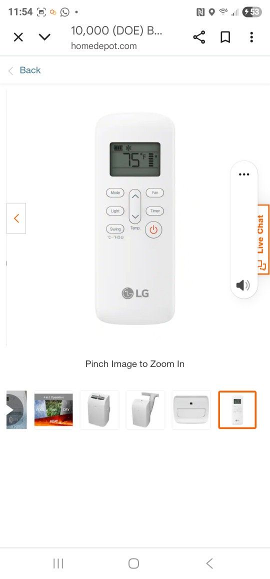 This portable air conditioner is the SMART choice for versatile cooling Cool your home from anywhere using LG ThinQ technology to control your air conditioner with your phone or use with Alexa and Hey Google to have control with the sound of your voice. This quiet unit is ideal for cooling medium rooms up to 450 sq. ft. You can even add a bit of warmth on cooler days with the supplemental heat option. The unit has 2 cooling and fan speeds and a 24 hour timer to create a cooling schedule. The auto-swing air vent helps direct the flow of air where it's needed most whether cooling, heating, dehumidifying or just circulating air. If there is a power outage, the auto restart feature will automatically turn your unit back on when power is restored. Easy rolling casters allow you to efficiently move the unit to another location. Other features include an LCD remote control, easy window venting installation kit, removable/washable filter and a check filter alert. 10,000 BTU (DOE), 14,000 BTU (ASHRAE) Estimated cooling area: 450 sq. ft. / room size: 18 ft. x 25 ft. Smartphone control with LG ThinQ technology Voice control works with Alexa or Hey Google 4 in 1 operation: cool/heat/fan/dry Window vent installation kit included 2 cooling and fan speeds with auto cool Supplemental heat Auto-swing air vent User friendly digital control panel and remote control 24-hour on/off timer Power failure auto restart Removable, washable filter Filter light reminder Easy rolling casters 115-Volt LCDI plug (NEMA 5 - 15) Power cord length: 59 in.