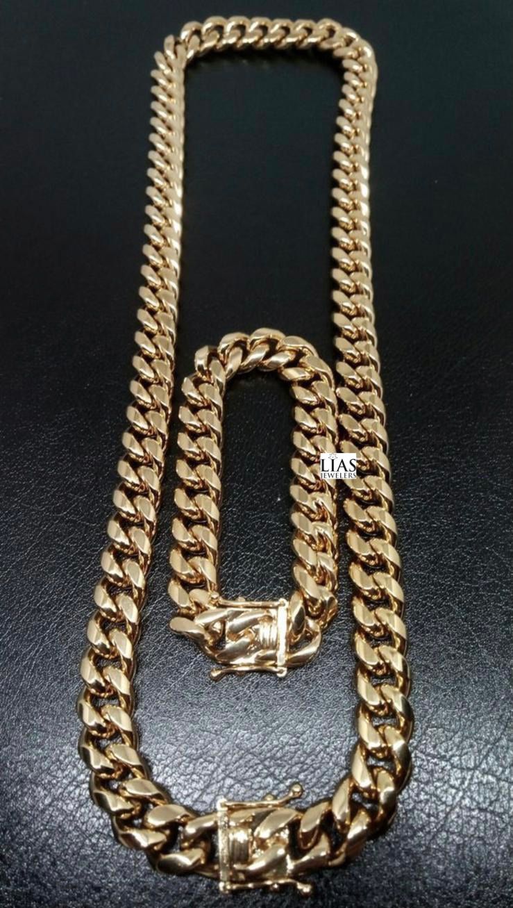 Brand new 18 k yellow gold filled Cuban link chain and bracelet Available in most sizes! Also have men’s jewelry Cuban link set men’s necklace chain bracelet Miami Cuban link tennis link set Figaro chain set