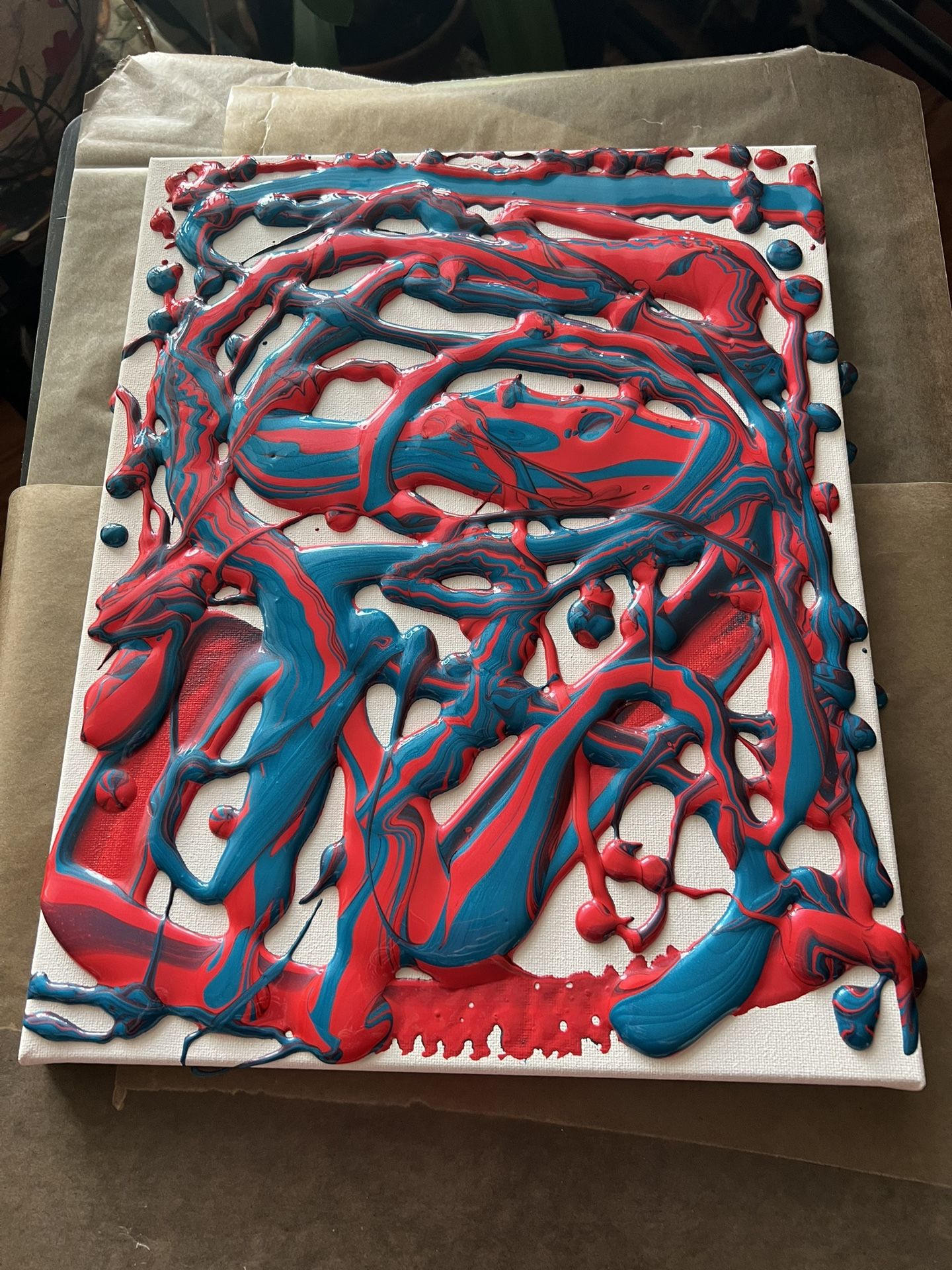 Hand poured acrylic on canvas - never duplicated. 11x14