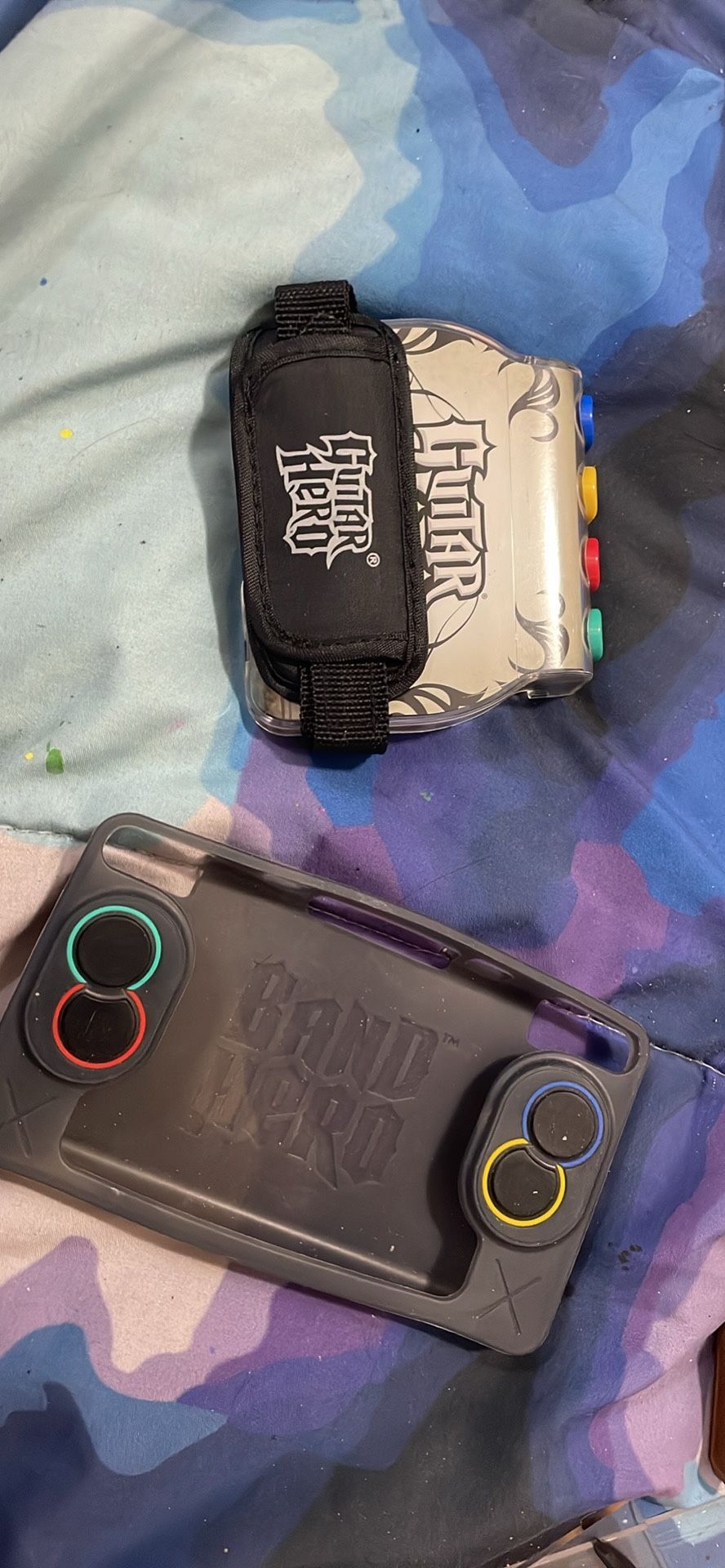 All in used like new condition, game cartridge, guitar attachment, and drum pad.