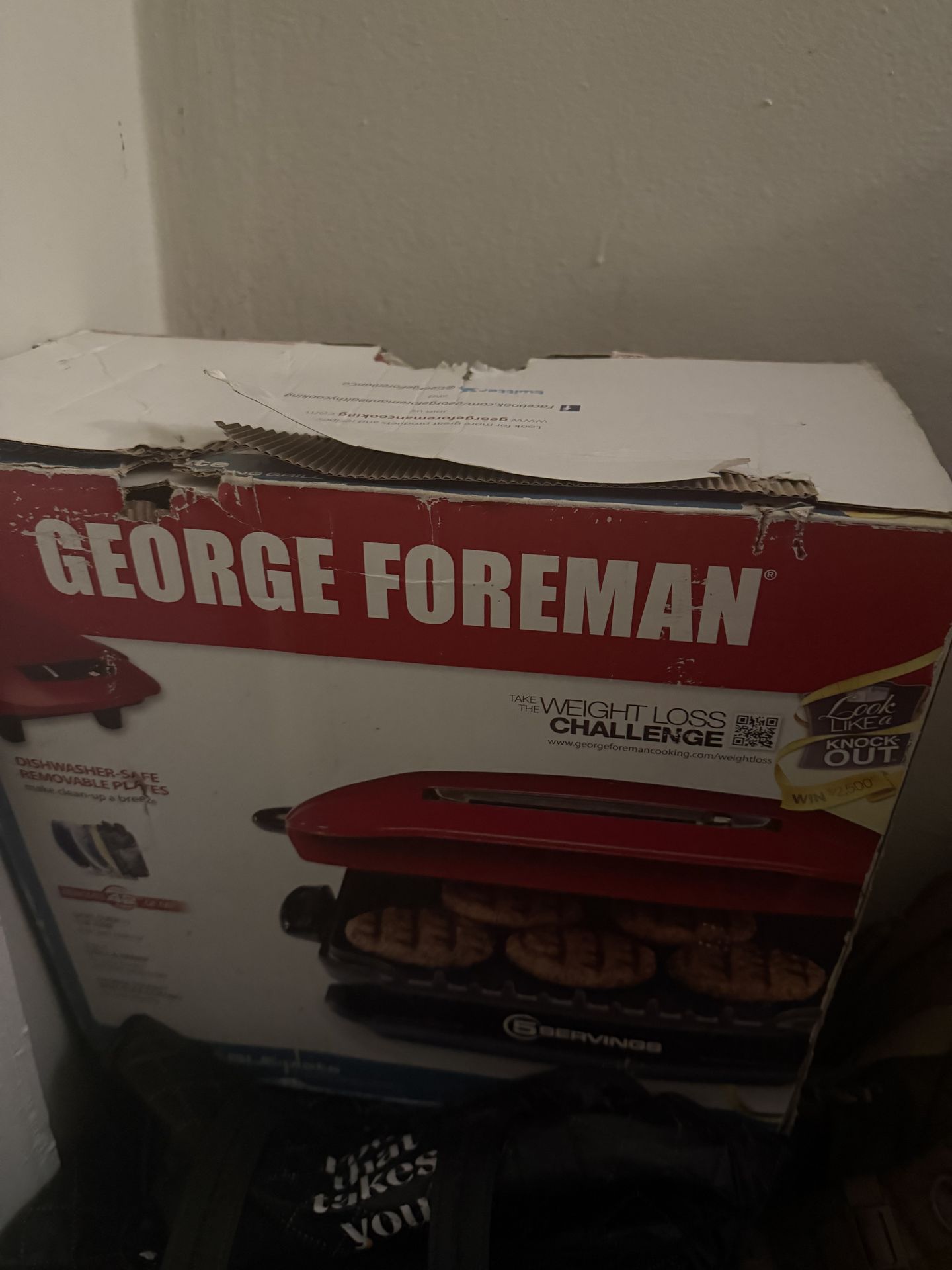 Selling a brand new George Foreman indoor grill (never used). Perfect for quick meals, burgers, chicken, paninis, and more! ✅ 6-serving size (great for families)✅ Removable, dishwasher-safe plates✅ Nonstick surface – easy cleanup✅ Healthy cooking (drains grease) 📦 Condition: Brand new, but box is slightly damaged from storage (grill inside is untouched)