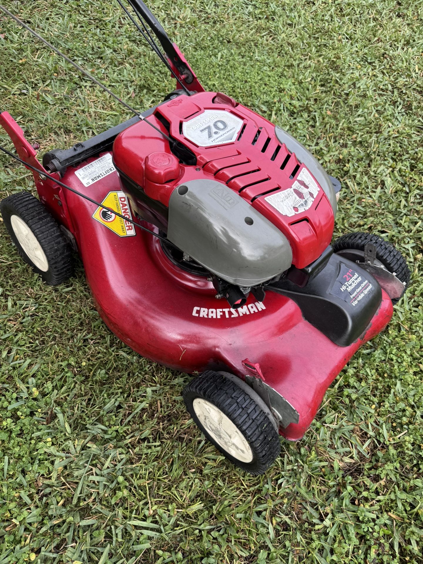 STRONG CRAFTSMAN 7 HP SELF PROPEL FRONT WHEELS DRIVE 21 INCH CUT. Just maintain as brand new air filter oil change AND BRAND NET FRONT WHEELS. IT IS PERFECT FOR HOMEOWNER OR LAND SCAPER AS A BACKUP.. the body is very strong READY FOR WORK.