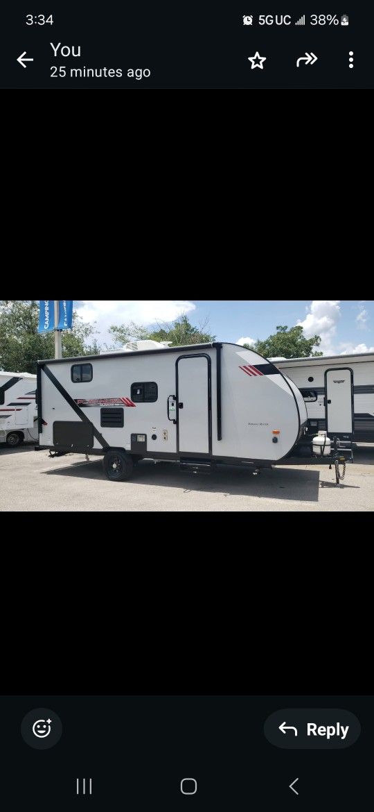 2020 camper, 20 feet, normal use, everything works perfect. Has a bathroom with shower, fridge and stove, big sink inside and small fridge and griddle outside as well. Double bunkbeds fit 2 kids on each. Dinnette makes up a full bed, fits 2 people confortably. Murphy bed is a queen size.